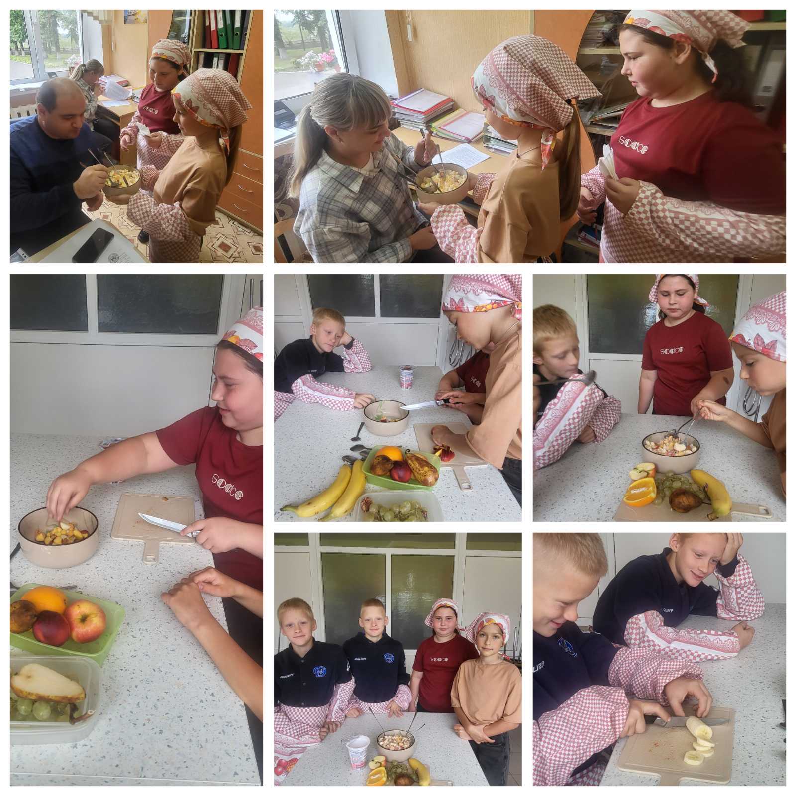 Ребята начальных классов участвовали в кулинарном мастер-классе по приготовлению фруктового салата "Витаминная бомба". В процессе готовки обсуждали полезные свойства фруктов и ягод. После мастер-класса была дегустация вкусного и полезного лакомства.