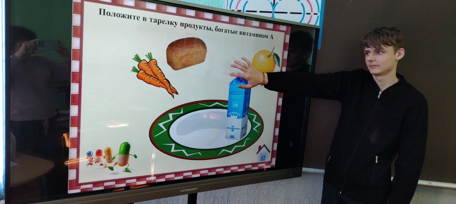 Учащиеся 5-9 классов приняли участие в игре-викторине «Витаминный калейдоскоп», в ходе которой закрепили знания о витаминах и их роли для организма человека. Ребята участвовали в интерактивной игре, разгадывали ребусы, отгадывали загадки. В конце мероприятия дети сделали вывод: чтобы быть здоровым, нужно употреблять как можно больше фруктов и овощей.