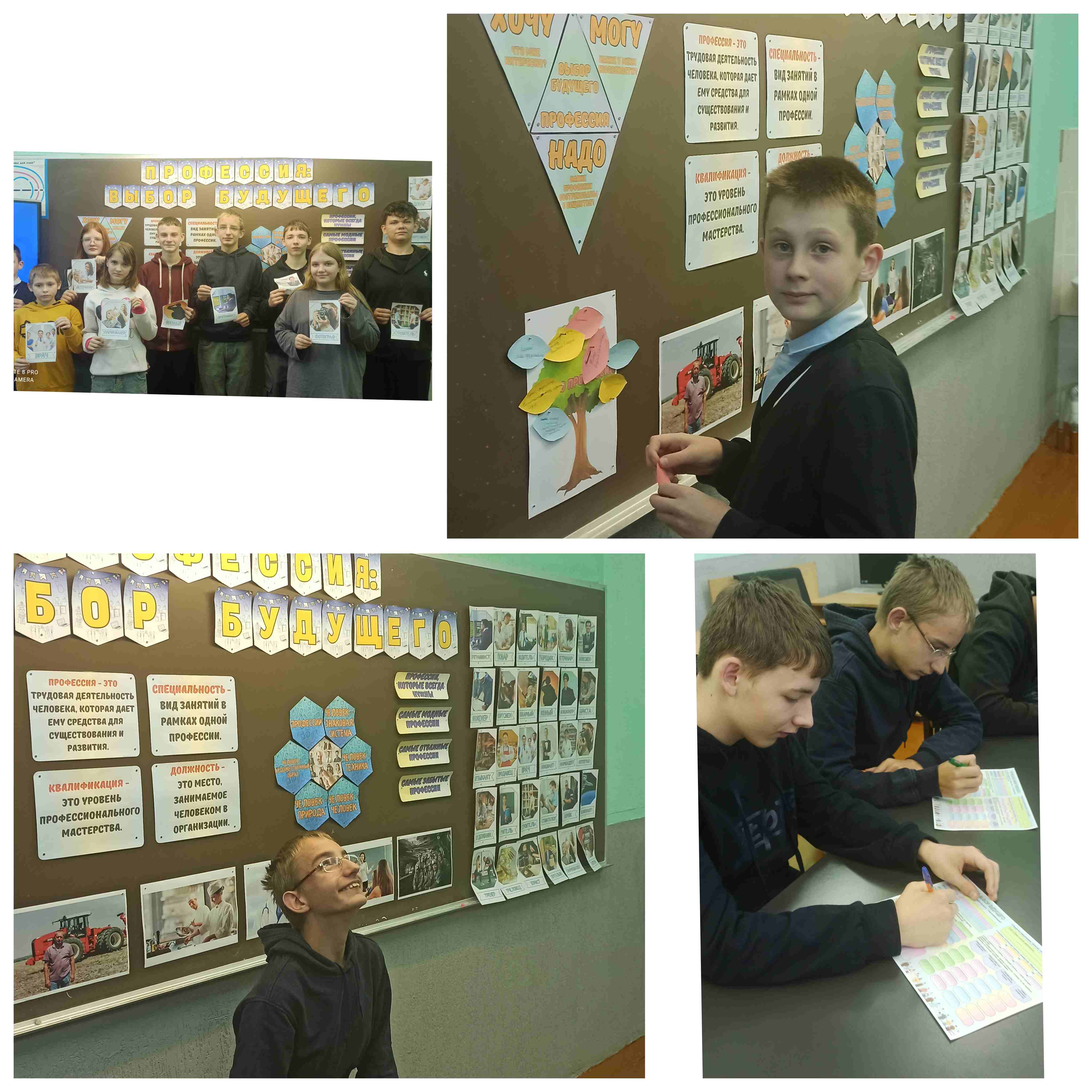 Был проведён тест «Кем мне быть?», который помог учащимся определить свои склонности к технико-аналитическому, социально-практическому или творческому профилю. В завершение прошла рефлексия «Дерево профессий», где каждый ученик разместил на дереве стикер с желаемой профессией и необходимыми для неё навыками.
