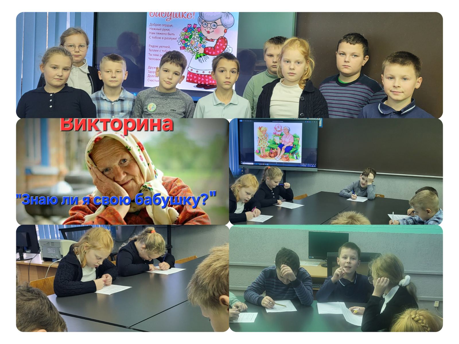 В рамках шестого школьного дня прошла викторина среди учеников 2-4 классов "Знаю ли я свою бабушку". Ребята отвечали на вопросы, рассказывали забавные истории из жизни и делились приятными и тёплыми словами в адрес своих бабушек.