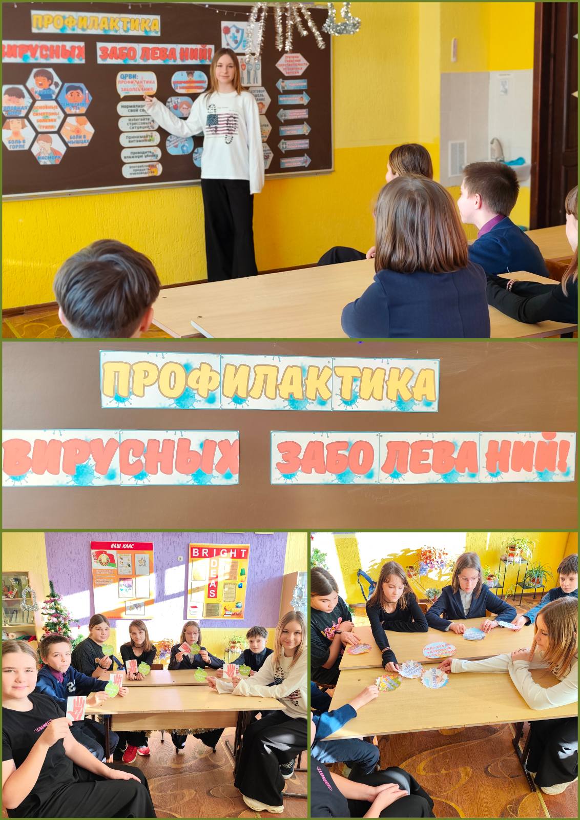 Для учащихся 5 -9 класса было проведено внеклассное мероприятие в форме устного журнала "Профилактика вирусных заболеваний". В ходе мозгового штурма ребята актуализировали знания "Что мы знаем о вирусах?". Была проведена интерактивная игра "Верю не верю". В заключительной части мероприятия учащиеся совместно с учителем создали умные заметки "Пять правил защитника здоровья".