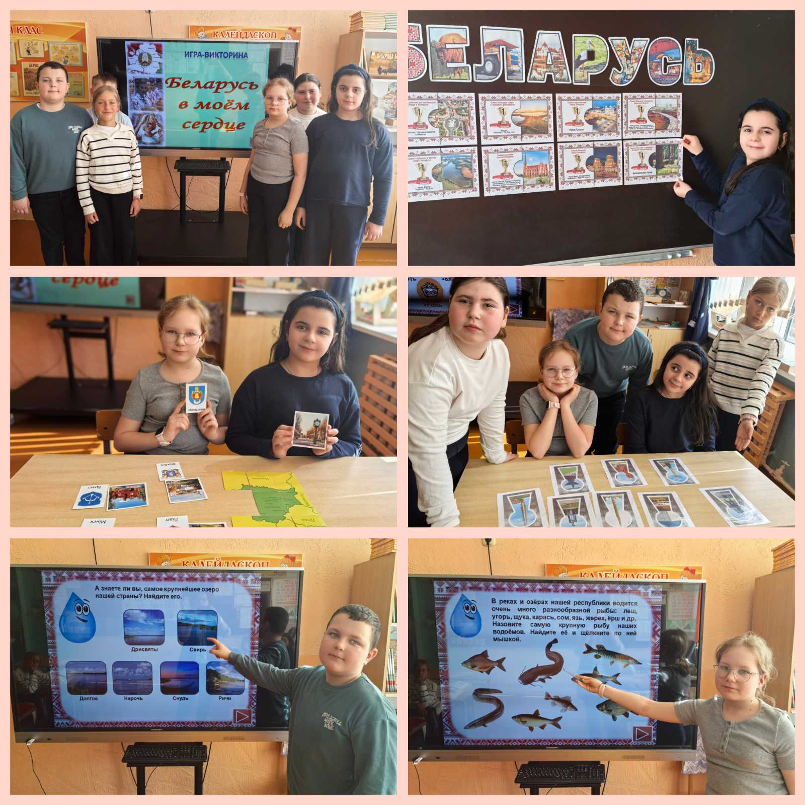 7 марта в рамках шестого школьного дня учащиеся 1–4 классов отправились в увлекательное путешествие, приняв участие в игре-викторине «Беларусь в моём сердце». Мероприятие было направлено на формирование у ребят любви к Родине, воспитание интереса и уважения к её истории и культуре, а также ответственного отношения к настоящему и будущему родного края. Юные знатоки прошли по интерактивным станциям, где смогли проверить свои знания о государственных символах, уникальной природе, великих людях и главных достопримечательностях Беларуси. Игра получилась не только познавательной, но и очень увлекательной.