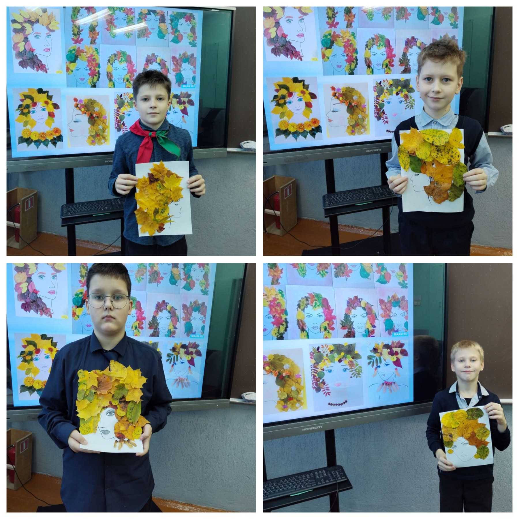 На уроке искусства учащиеся пятиклассники читали стихи о золотой осенней поре, слушали мелодии осени, рассматривали осенние пейзажи. После выполнения творческого задания «Портрет осени» ребята уверенно ответили: «Да, урок точно может быть осенним!»