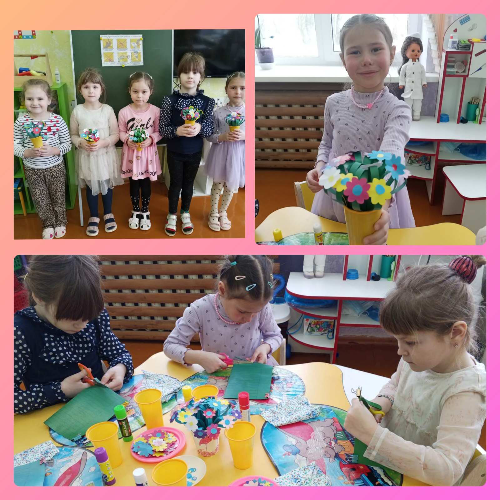 2 марта воспитанники готовили подарки для своих любимых мамочек. Это были вазочки с цветам, которые ребята делали из бумаги своими руками. Дети очень старались, чтобы букетики были красивыми, очень хотели порадовать своих любимых мамочек. И это им удалось. Вазочки с цветами получились яркими и красивыми. Настроение у всех было отличное.