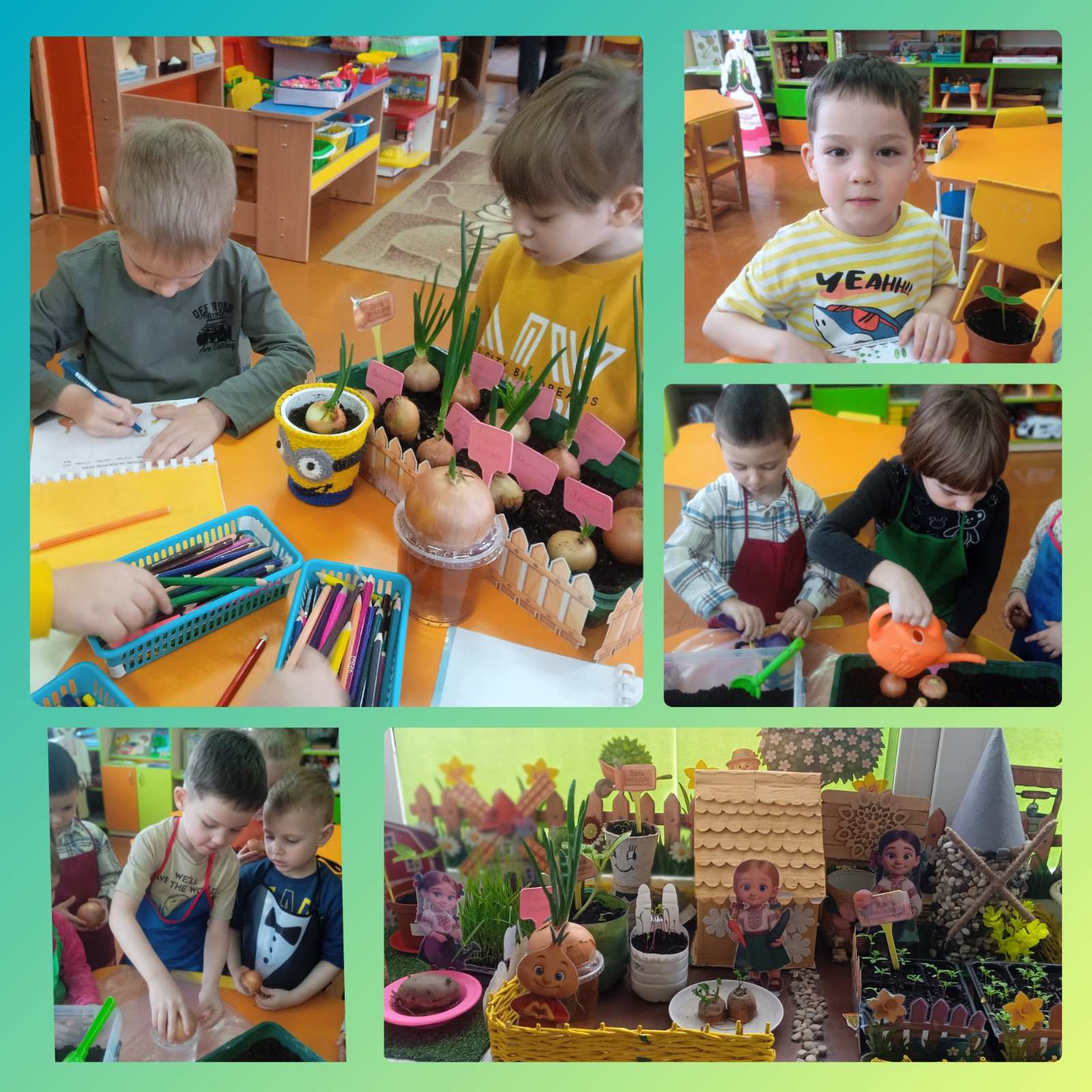 В разновозрастной группе "Мультяшки" кипит работа! Юные агрономы устроили на подоконнике настоящий огород. Ребята не просто посадили семена, они выбрали самую разную культуру: лук, фасоль, кабачок, огурец и свеклу. Каждый день кипит работа: воспитанники поливают свои грядки, рыхлят землю и с большим интересом наблюдают, как из маленького семечка пробивается первый робкий росток. Все свои наблюдения дети фиксируют в личных дневниках наблюдений. Зарисовывают, как меняются листья, измеряют, какой стебель выше, и с нетерпением ждут первых плодов своего труда. Самым вкусным и долгожданным итогом - стал урожай лука! Когда перо лука выросло высоким и сочным, мы устроили кулинарный мастер-класс. Дружно нарезали свежие овощи (с помощью воспитателя, конечно) и приготовили полезный витаминный салат из лука, огурца и помидора. Этот опыт научил детей не только ухаживать за растениями, но и ценить свой труд. А есть салат, выращенный своими руками, — удовольствие вдвойне!