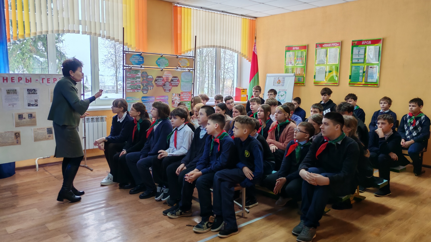 С целью углубления знаний учащихся об исторических событиях Великой Отечественной войны, о геноциде белорусского народа, а также формирования у школьников чувства сострадания и исторической памяти, в 1-4 классах прошёл информационный час «Красный Берег: концлагерь короткого детства» с использованием пособий «Геноцид белорусского народа». В ходе мероприятия учащиеся узнали о страшной странице истории — детском донорском концлагере, созданном фашистами на территории Гомельской области. Ребята прослушали фрагменты книги, обсудили понятие «геноцид» и значение мемориального комплекса, возведённого в память о погибших детях. Особый отклик у детей вызвало письмо Кати Сусаниной, высеченное на камне мемориала. Минута молчания, объявленная в завершение мероприятия, стала данью памяти всем детям, чьё детство оборвала война. Мероприятие способствовало воспитанию у учащихся уважения к истории своей страны и памяти о жертвах войны.