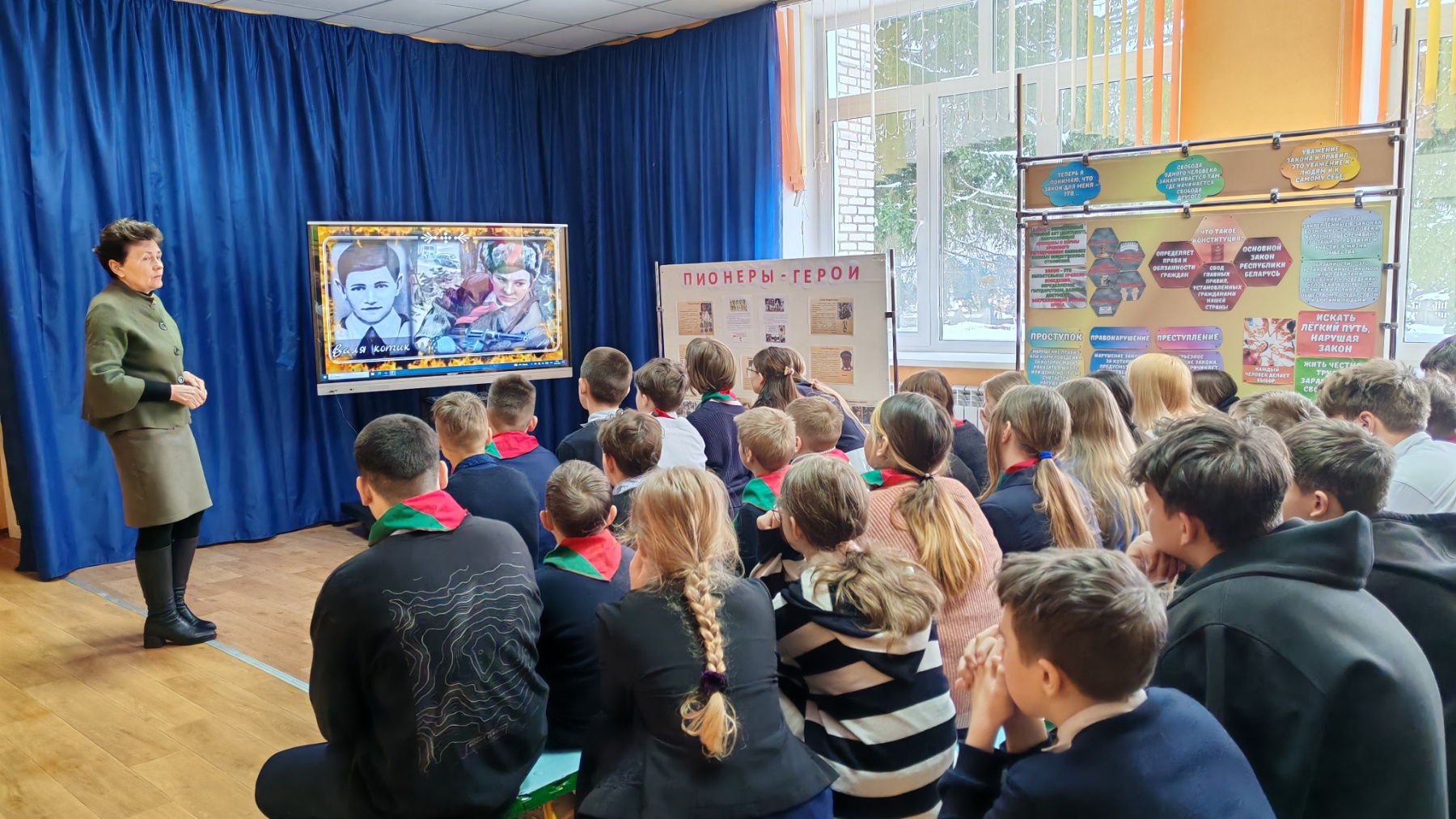С целью воспитания патриотических чувств у подрастающего поколения на примерах мужества и героизма пионеров-героев, расширения знаний учащихся о Великой Отечественной войне 06.02.2026 в учреждении для учащихся 1-9 классов прошел урок мужества «Маленькие герои большой войны», приуроченный ко Дню памяти юного героя – антифашиста. В ходе урока ребята узнали, почему День памяти юного героя-антифашиста отмечается именно 8 февраля, узнали о тех, чьё детство и юность были опалены самой страшной в истории человечества войной. Все дети пришли к одному мнению, что судьба героев- антифашистов навсегда останется примером отваги, мужества, борьбы со злом за мир и чистое небо над головой.