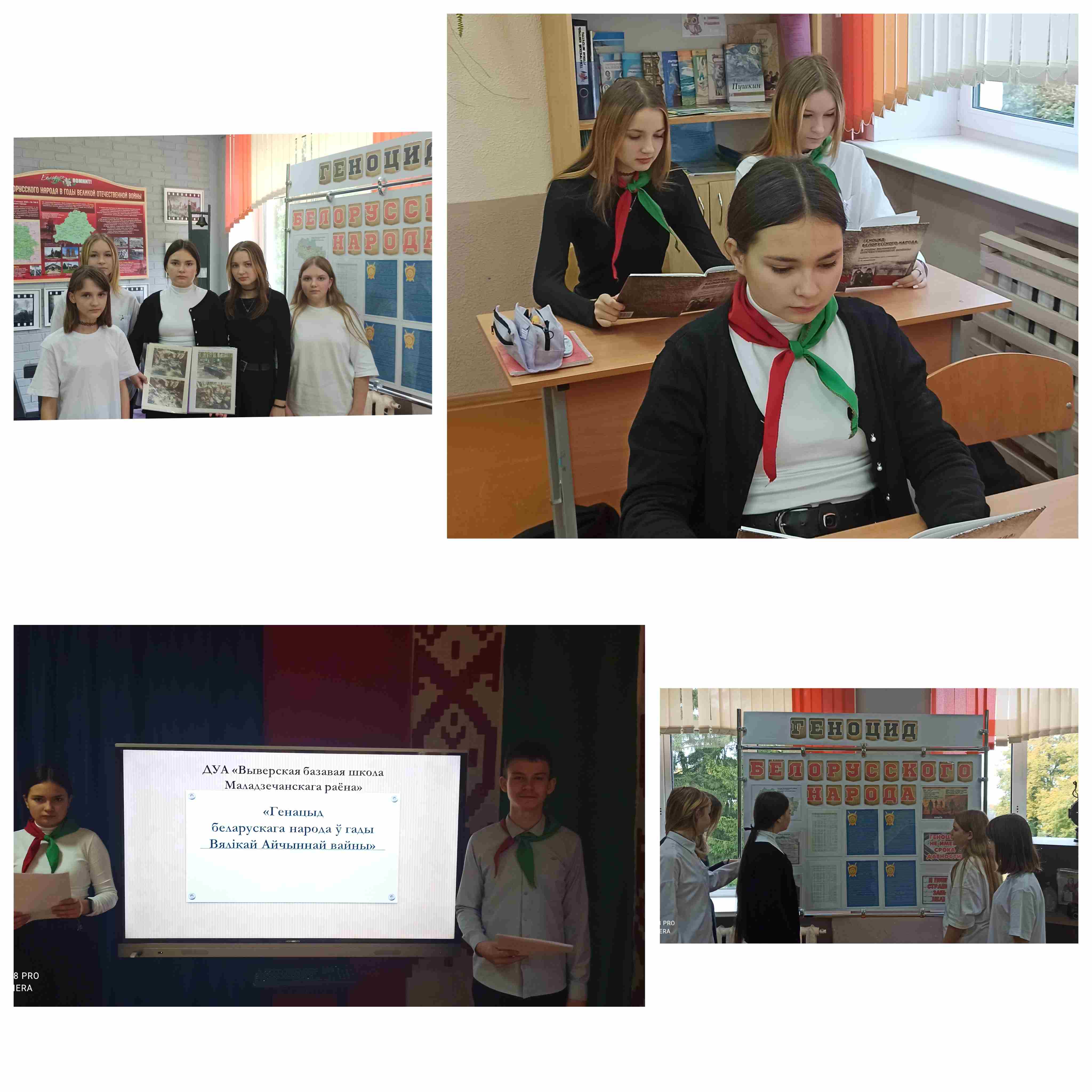 09.10.2025в ГУО «Выверская базовая школа Молодечненского района» прошли информационные часы "Геноцид белорусского народа в годы Великой Отечественной войны". Ребята смогли узнать о том, сколько людей погибло от рук немецко-фашистских захватчиков, какая работа ведётся по увековечению памяти жертв концлагерей, какие памятники жертвам фашизма возведены в нашей стране. Ребята высказывали свое отношение к данным страшным событиям и пришли к выводу, что такое никогда не должно повториться!