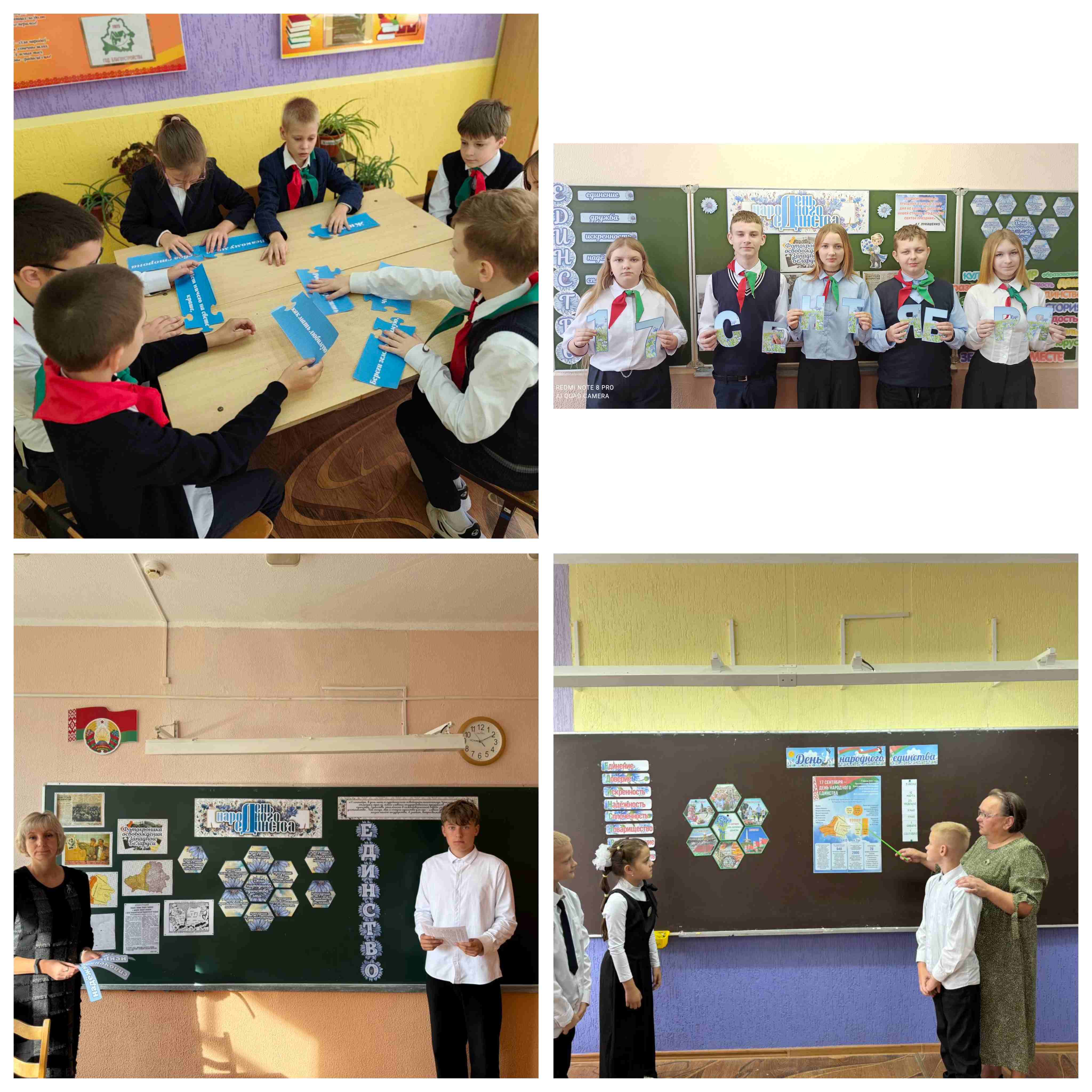 17 сентября в ГУО «Выверская базовая школа Молодечненского района» прошел Единый урок ко Дню народного единства. При проведении урока внимание учащихся было направлено на события, ставшие исторической основой праздника. Наши учителя объяснили учащимся значение этого праздника для современной Беларуси и важность единства белорусского народа для сохранения независимости и суверенитета Беларуси. Главным условием сохранения независимости Беларуси и приумножения достигнутого является единство общества и государства. Мы, белорусы – единая нация, которая выбрала свой собственный путь развития и твердо его придерживается. Наша сила – в единстве, а когда мы едины – нам не страшны никакие испытания!