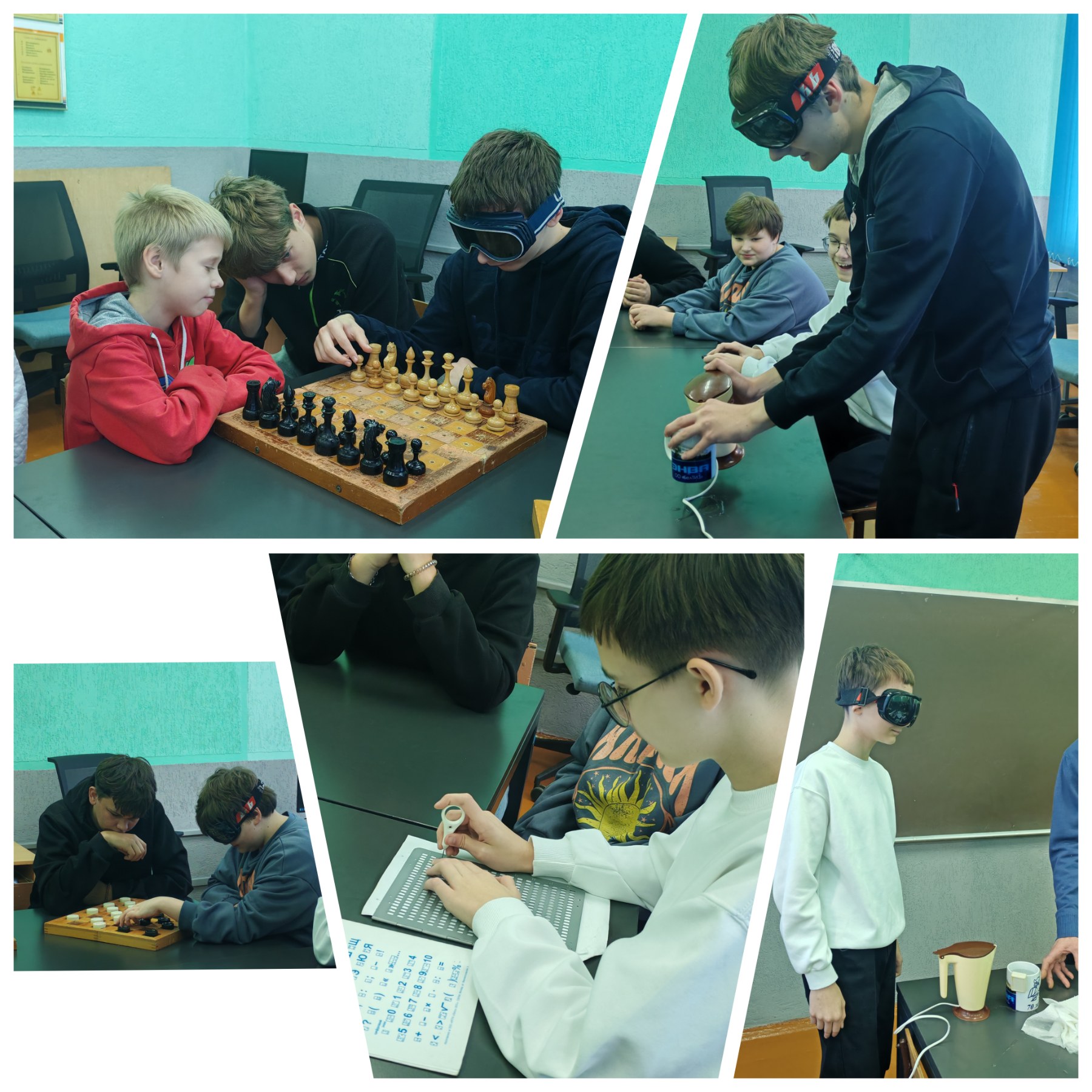 Савченко Н.Н. поделился опытом, как наливать воду, как ориентироваться в пространстве с помощью тактильной трости и доверять окружающим в ориентировании на голос. С ребятами были проведены обучающие элементы с использованием трости и с разъяснением как правильно подойти и предложить помощь в сопровождении. С помощью смартфона было продемонстрировано, как определить денежную купюру, ориентироваться в пространстве с программой «Osmand» и сделали звонок волонтёрам по программе «Be My Eyes». Были показаны ролики различных видов спорта для незрячих. Некоторые из них дети опробовали в игре.