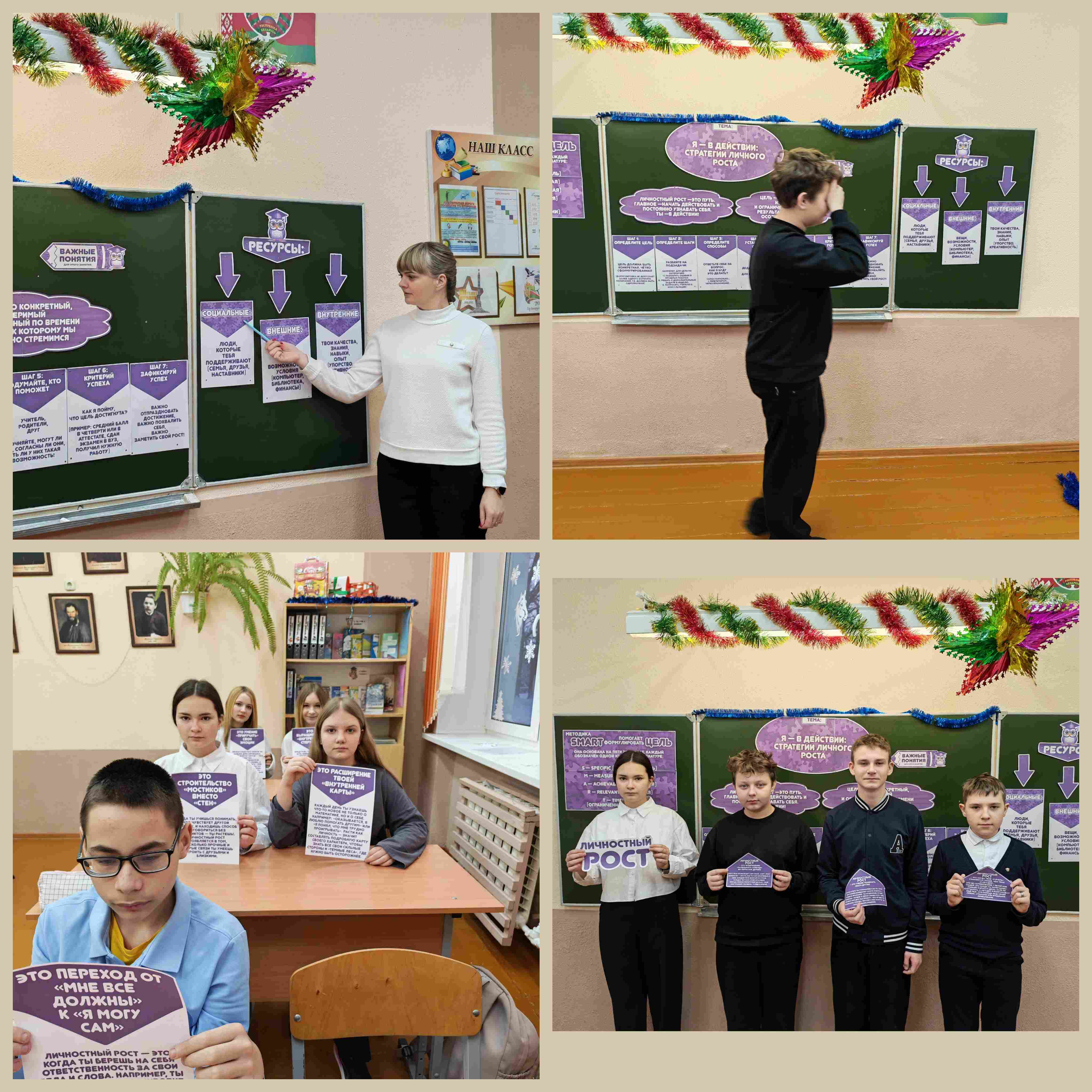 13 января 2026 года в 4 классе прошёл классный час «Я – в действии: стратегии личностного роста» в рамках цикла «Моё психологическое благополучие». Цель мероприятия — сформировать у учащихся навыки осознанного отношения к своему психологическому состоянию, развить эмоциональную устойчивость и готовность поддерживать сверстников в сложных ситуациях. На занятии ребята не просто обсудили важные темы, а активно включились в практику. В упражнении «По листикам» каждый участник тренировал координацию совместных действий, уверенность в управлении и умение привлекать других для достижения общей цели. Особый интерес вызвали упражнения «"Хочу" и "Надо"» и «Дуем к цели», в которых школьники учились правильно формулировать и оценивать жизненные цели. Четвероклассники разобрались, чем мечта отличается от цели, научились дробить большие задачи на конкретные шаги и даже «примерили» свои цели через планирование. В конце занятия ребята пришли к важному выводу: личностный рост — это не соревнование, а индивидуальный путь, где каждый движется в своём темпе. Главное — действовать!