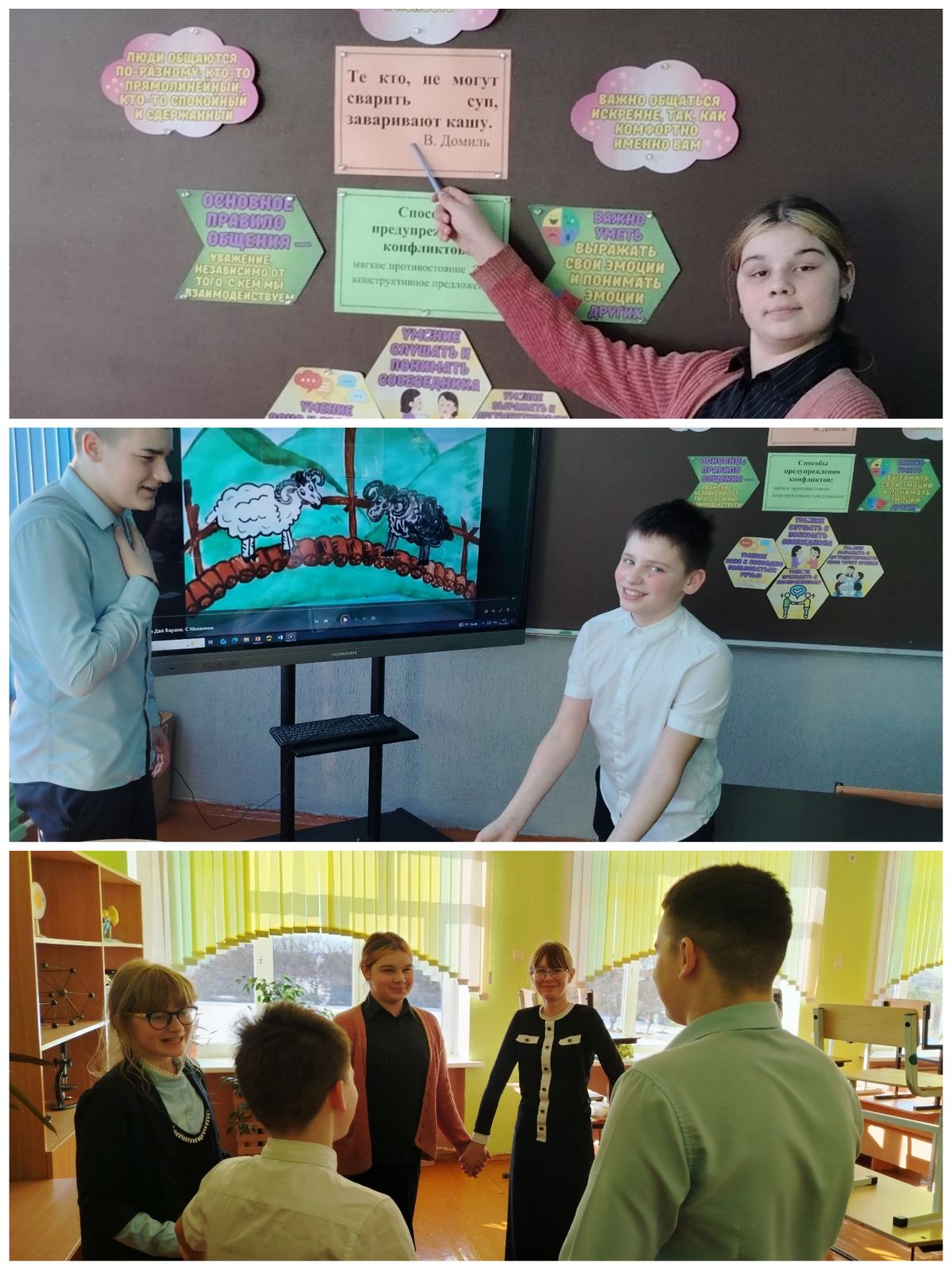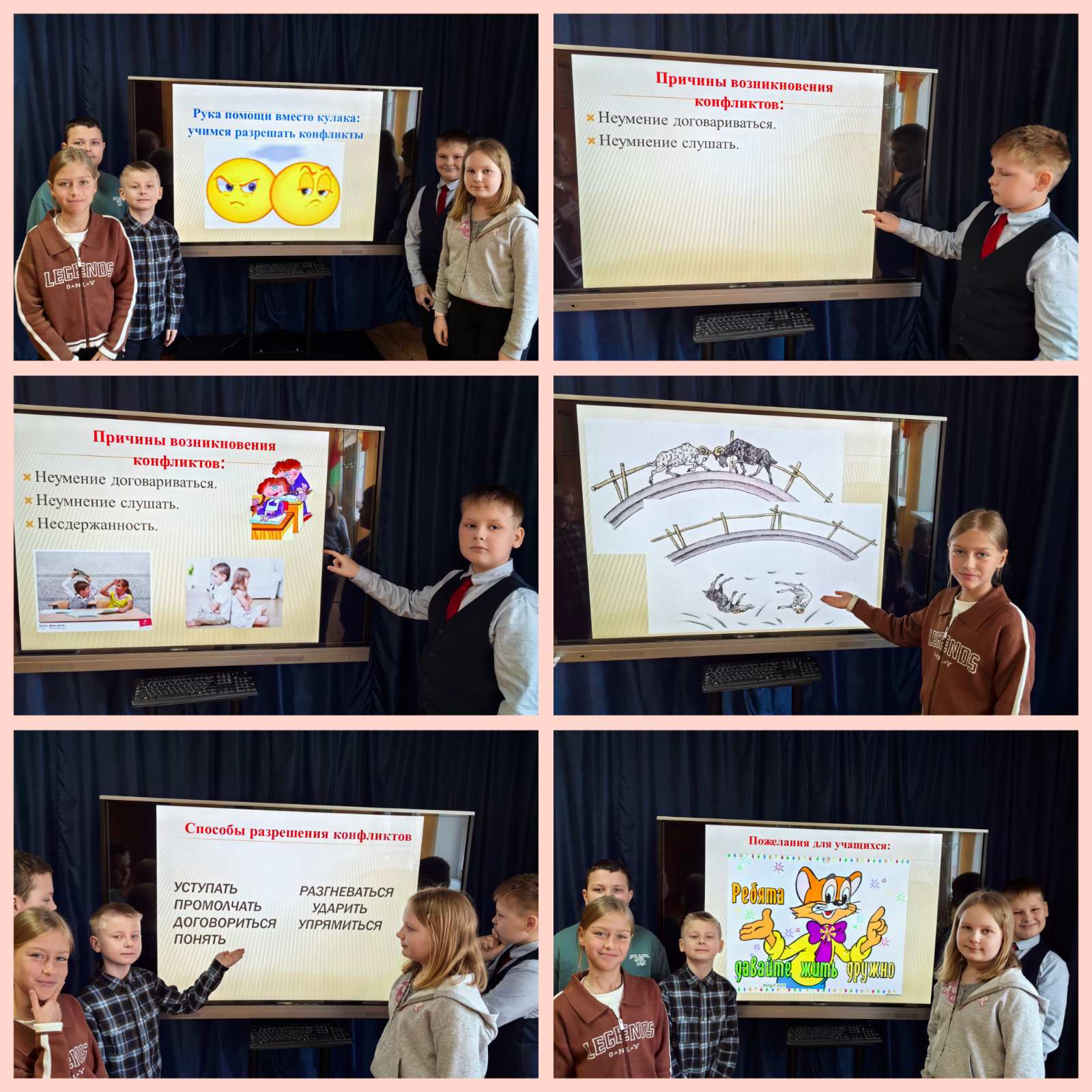 4 марта для учащихся была проведена беседа "Рука помощи вместо кулака: учимся разрешать конфликты мирно". Цель мероприятия - познакомить учащихся с понятиями "конфликт", "конфликтная ситуация", со способами предупреждения конфликтов. С целью формирования навыков общения и социального взаимодействия были использованы приёмы " Ассоциативный ряд"," Разыграй ситуацию", "От сердца к сердцу". Ребята поняли, что избежать конфликта может каждый, и в любой ситуации это возможно.