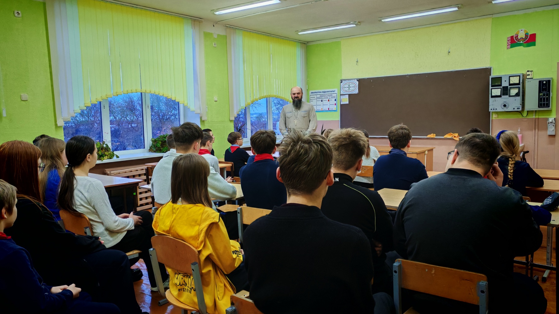 18.02.2026 в ГУО «Выверская базовая школа Молодечненского района» прошла встреча учащихся 6-9 классов с настоятелем храма Святого Пантелеймона Савчуком Евгением. Настоятель храма провел с ребятами беседу о ценности жизни. Отец Евгений попытался ответить на волнующие вопросы подрастающего поколения: «зачем я живу?», «как справиться с этим миром и успешно влиться в него?», «как не стать отвергнутым обществом?» и т.д. Священнослужитель в ходе беседы пояснил учащимся, что при любых жизненных обстоятельствах никогда не нужно терять надежду на помощь Божью, вселял в детей уверенность в свои силы и возможности, внушал им оптимизм и надежду, проявлял сочувствие и понимание. Во время своей беседы священник приводил примеры из жизни и различные притчи. Ребята с большим интересом слушали и активно отвечали на его вопросы, попутно задавая свои. Встреча прошла в теплой доброжелательной обстановке.
