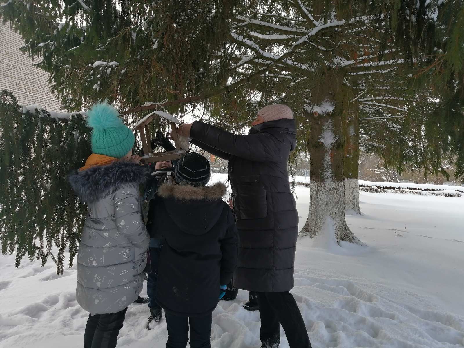 Птицы нуждаются в зимнее время в нашей помощи. Действительно, зима – трудное время для птиц, особенно если она суровая и многоснежная. Голодная птица сильно страдает от холода. Нужно поддержать птиц зимой, сделать для них кормушки и не забывать подсыпать в них корм. Ежегодно в ГУО «Выверский учебно – педагогический комплекс детский сад базовая школа Молодечненского района» проходит акция «Покормите птиц зимой». Её целью является закрепление представлений школьников о зимующих птицах, их образе жизни, о связи с окружающей средой, роли человека в жизни птиц. Воспитание заботливого отношения к птицам, желание помогать в трудных зимних условиях.