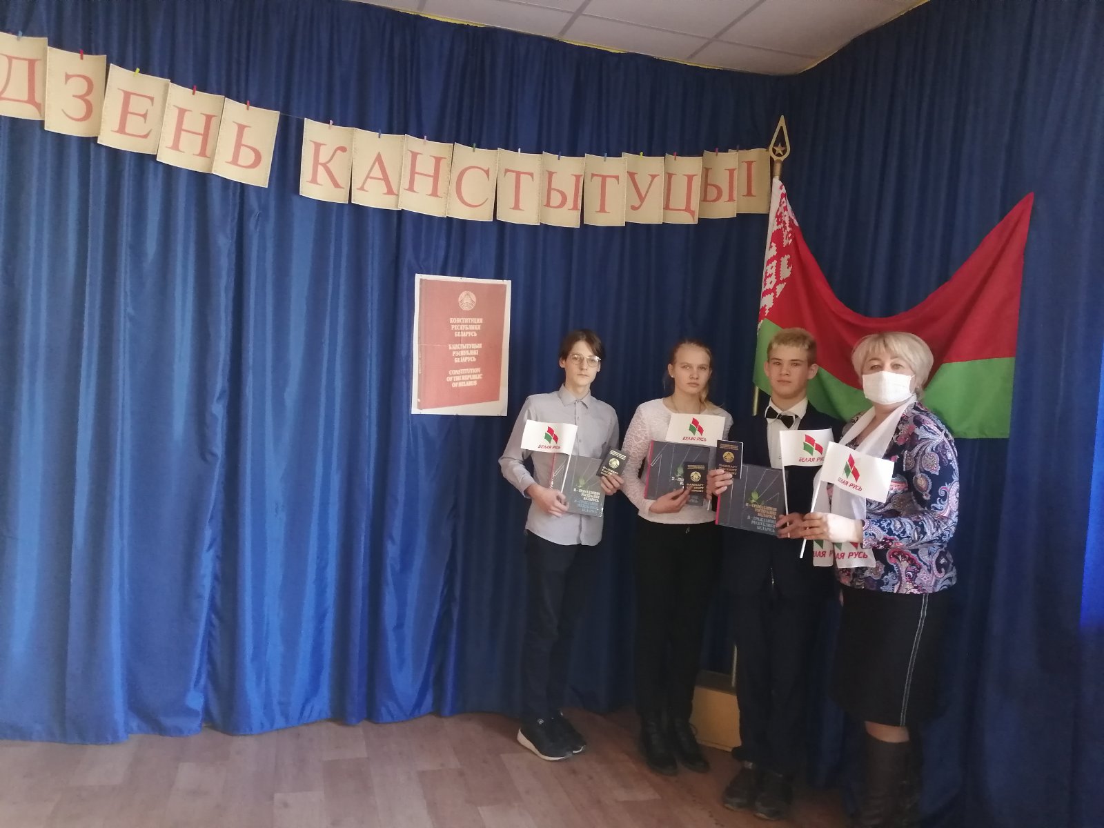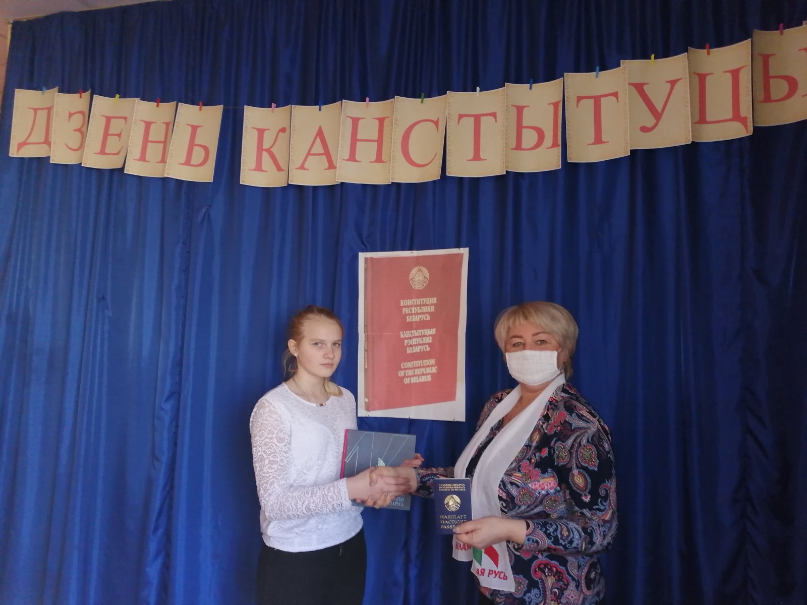 С целью ознакомления учащихся с важнейшим законом нашего государства – Конституцией Республики Беларусь, 15 марта в учреждении членами ОО «Белая Русь» было проведено мероприятие, посвящённое одному из самых важных дней для нашей страны – Дню Конституции Республики Беларусь! В ходе торжественного мероприятия была просмотрена презентация «Конституция Республики Беларусь» и организовано торжественное вручение паспортов.