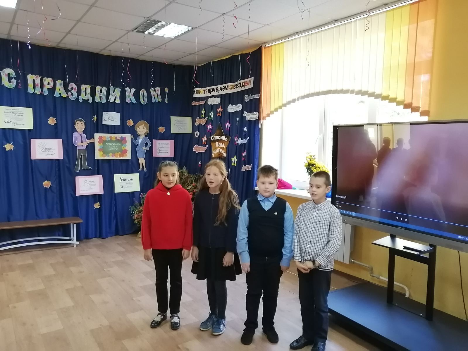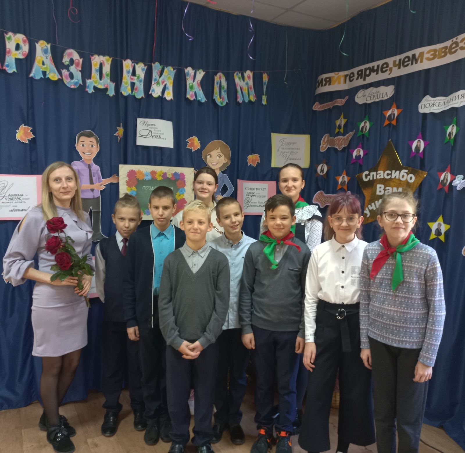 День учителя - один из самых ярких праздник в школе! Торжественно встретили этот день в нашем учреждениии. С самого утра царила праздничная атмосфера. Ребята громко и дружно встречали каждого учителя, поздравляли с этим замечательным праздником, никто из учителей не остался без внимания. В холле была оформлена фотозона для красивых фото.