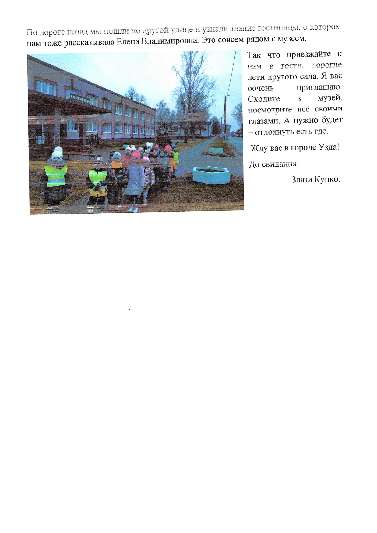 ПИСЬМО ОТ ВОСПИТАННИЦЫ СРЕДНЕЙ ГРУППЫ №12 ДОШКОЛЬНОГО ЦЕНТРА РАЗВИТИЯ РЕБЕНКА "ВЯСЁЛКА" Г. УЗДА