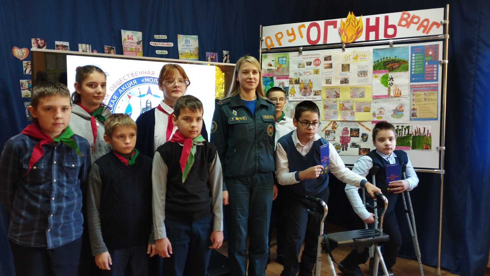 16.10.2024 в рамках проведения республиканской пожарно-профилактической акции по предупреждению пожаров и гибели людей «За безопасность вместе» для учащихся II-IX классов учреждения была проведена профилактическая беседа - викторина «Правила пожарной безопасности», а для первоклассников прошёл необычный урок безопасности, на котором дети учились вызывать службу спасения по телефону, алгоритму действий во время чрезвычайных ситуаций, разгадывали кроссворды. Данные мероприятия провела инспектор сектора пропаганды и взаимодействия с общественностью Молодечненского ГРОЧС Мороз Н.А.