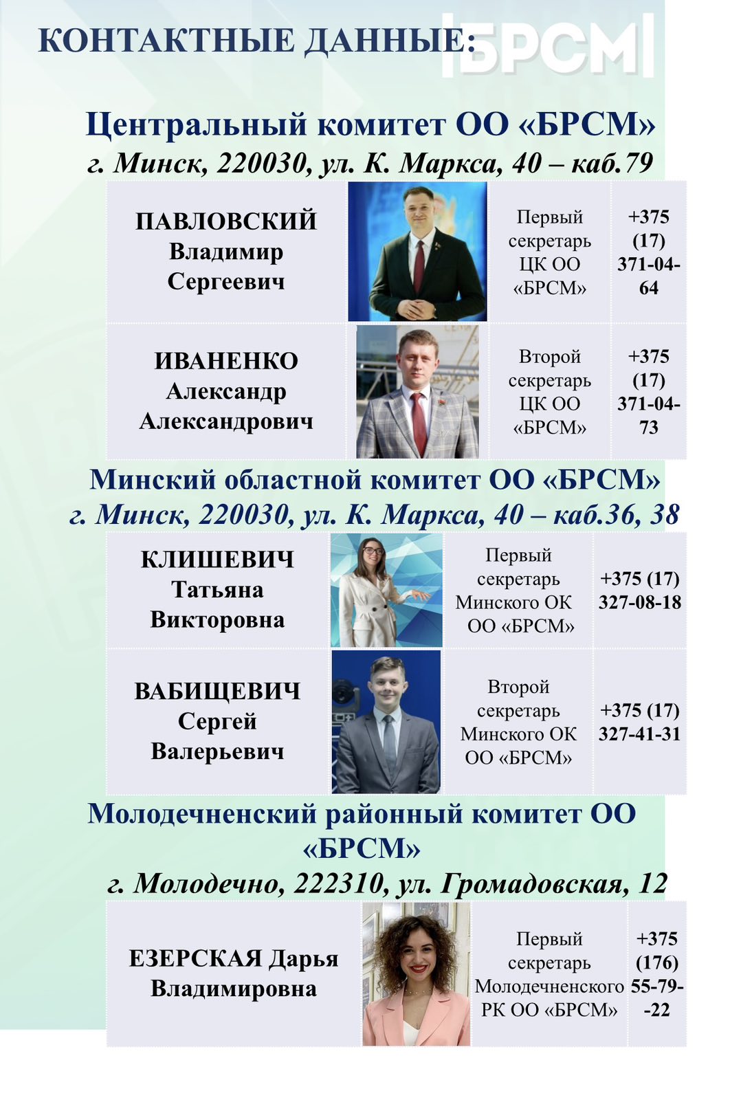 Став членом БРСМ, Вы получаете билет и значок БРСМ, а также возможность участвовать во всех мероприятиях и акциях, проводимых Белорусским Республиканским Союзом Молодёжи!