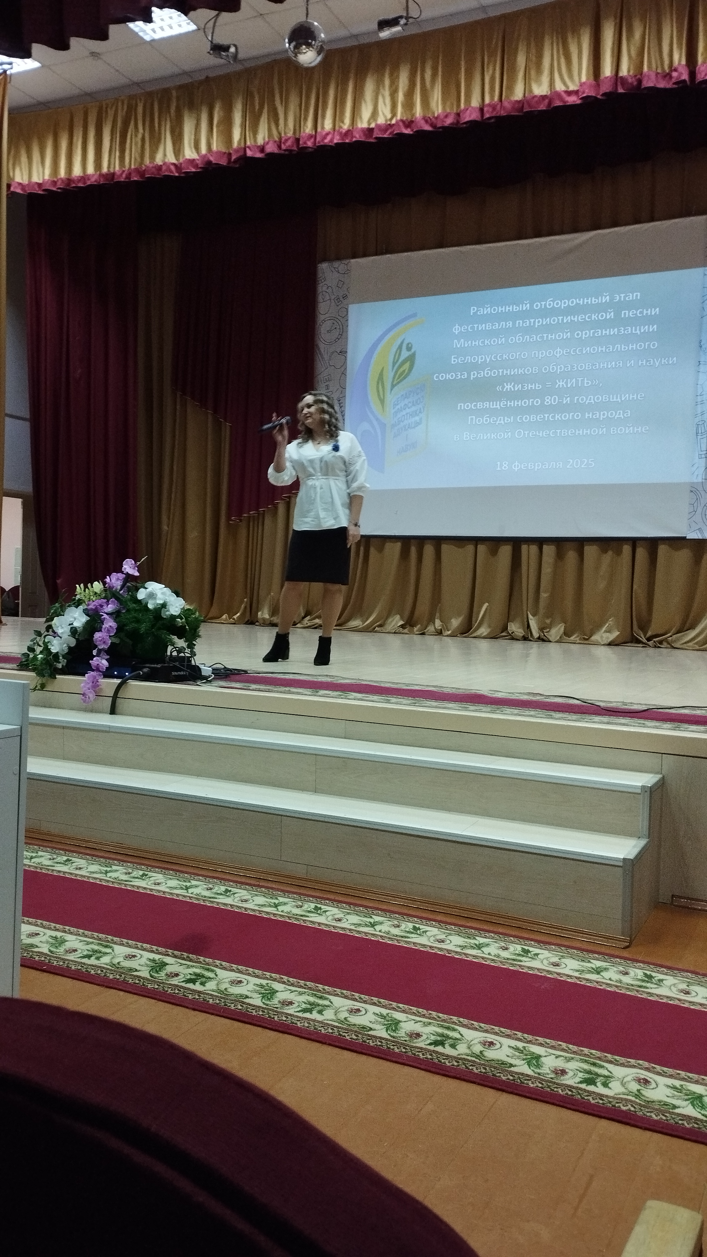 18 февраля 2025 года Екатерина Александровна Гриб, член профсоюзной организации, приняла участие в фестивале патриотической песни Минской областной организации Белорусского профессионального союза работников образования и науки "Жизнь=ЖИТЬ", посвященном 80-й годовщине Победы советского народа в Великой Отечественной войне! Результат – выход в следующий тур!