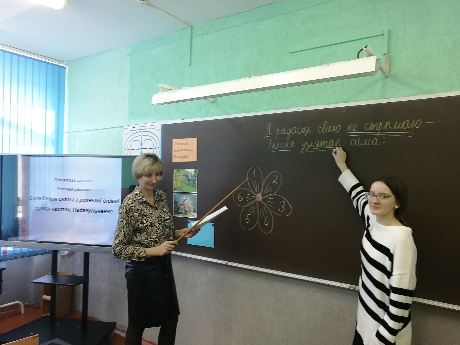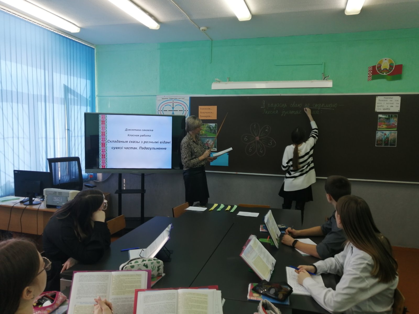 Таксама ў першы дзень прайшоў адкрыты ўрок беларускай мовы ў ІХ класе "Біяграфія складанага сказа" (настаўнік Чаеўская М.П.). На вучэбным занятку дзевяцікласнікі паўтаралі тэорыю, з задавальненнем "збіралі сказы", характарызавалі іх будову, складалі схемы і свае сказы, рыхтуючыся да падагульнення па тэме "Складаныя сказы з рознымі відамі сувязі частак".