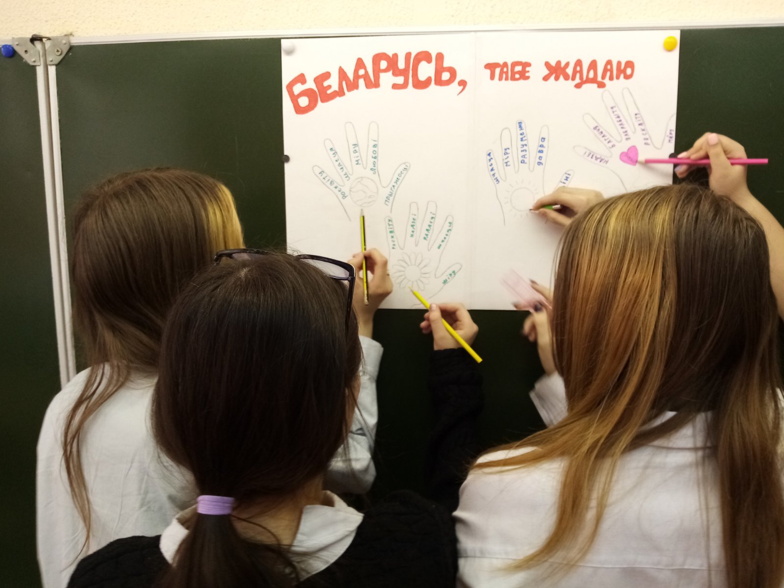 Вучні 7 класа паўдзельнічалі ў акцыі пажаданняў Беларусі "Далучы сваю далонь". Дзеці жадалі сваёй краіне міру, дабрабыту, росквіту.