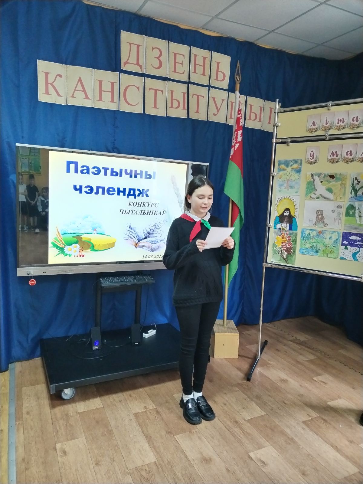 Наступным мерапрыемствам пятніцы стаў паэтычны чэлендж, удзел у якім маглі прыняць лепшыя дэкламатары ад кожнага класа. Прысутныя з задавальненнем паслухалі вершаваныя радкі вядомых беларускіх пісьменнікаў, прысвечаныя Радзіме, роднай Беларусі і ўсім беларусам у выкананні вучняў школы.