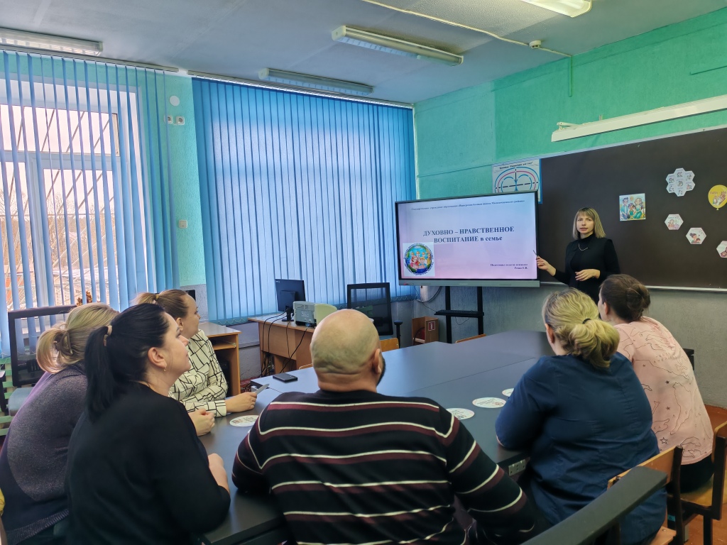 10.04.2025 четвертый день ХІV педагогического марафона. День педагога-психолога, День педагога социального. Педагог-психолог учреждения Ревко Евгения Васильевна для законных представителей учащихся провела консультацию по теме «Духовно-нравственное воспитание в семье». Во время консультации педагога психолог акцентировала внимание родителей на необходимость совместной с детьми досуговой деятельности, включающей в себя чтение книг, просмотр соответствующих художественных фильмов, трудотерапию.