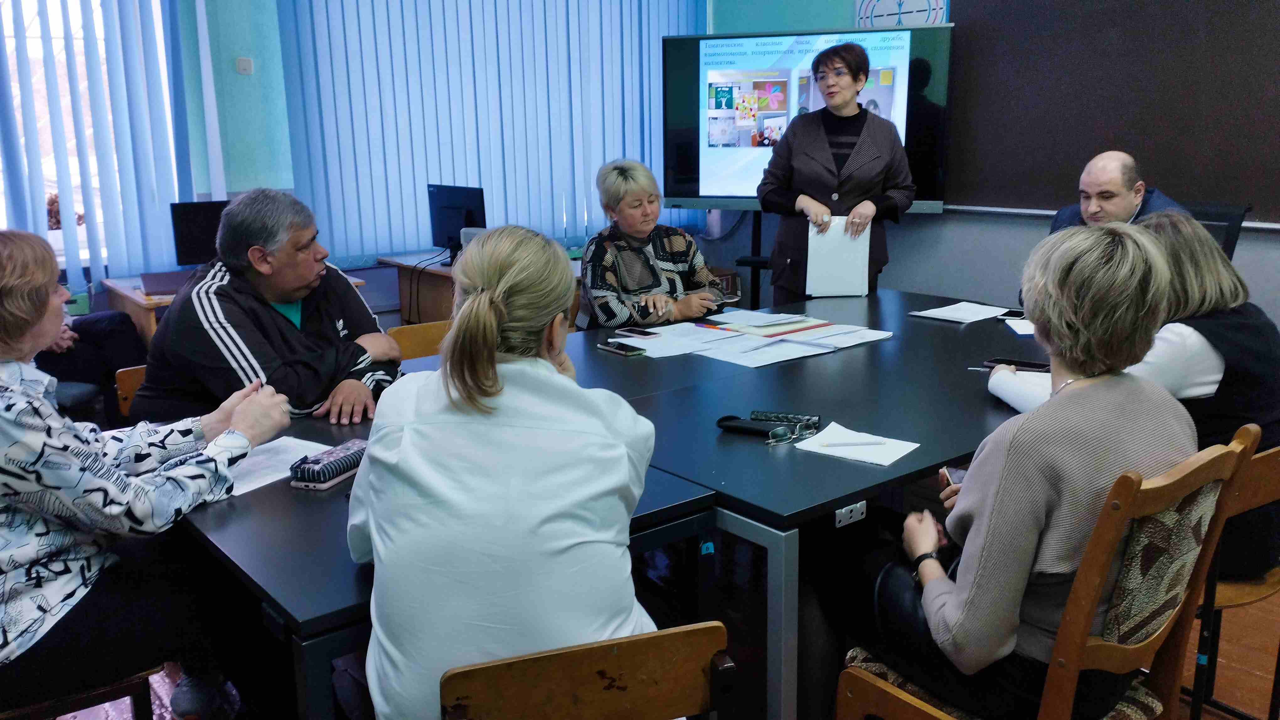 В ходе педагогического совета педагоги обсудили основные признаки, присущие коллективу, определили типы коллективов в зависимости от уровня сформированности, выявили проблемы и трудности в работе по формированию и сплочению коллектива, обсудили предложенные пути и способы решения выявленных проблем, на практике выполнили ряд заданий с элементами игры, эффективно способствующих сплочению и развитию ученических коллективов. Опытом работы в данном направлении поделились классные руководители Баутрель Татьяна Владимировна, Лемешевская Лилия Петровна, а также воспитатель разновозрастной группы Пшенник Инна Владимировна.