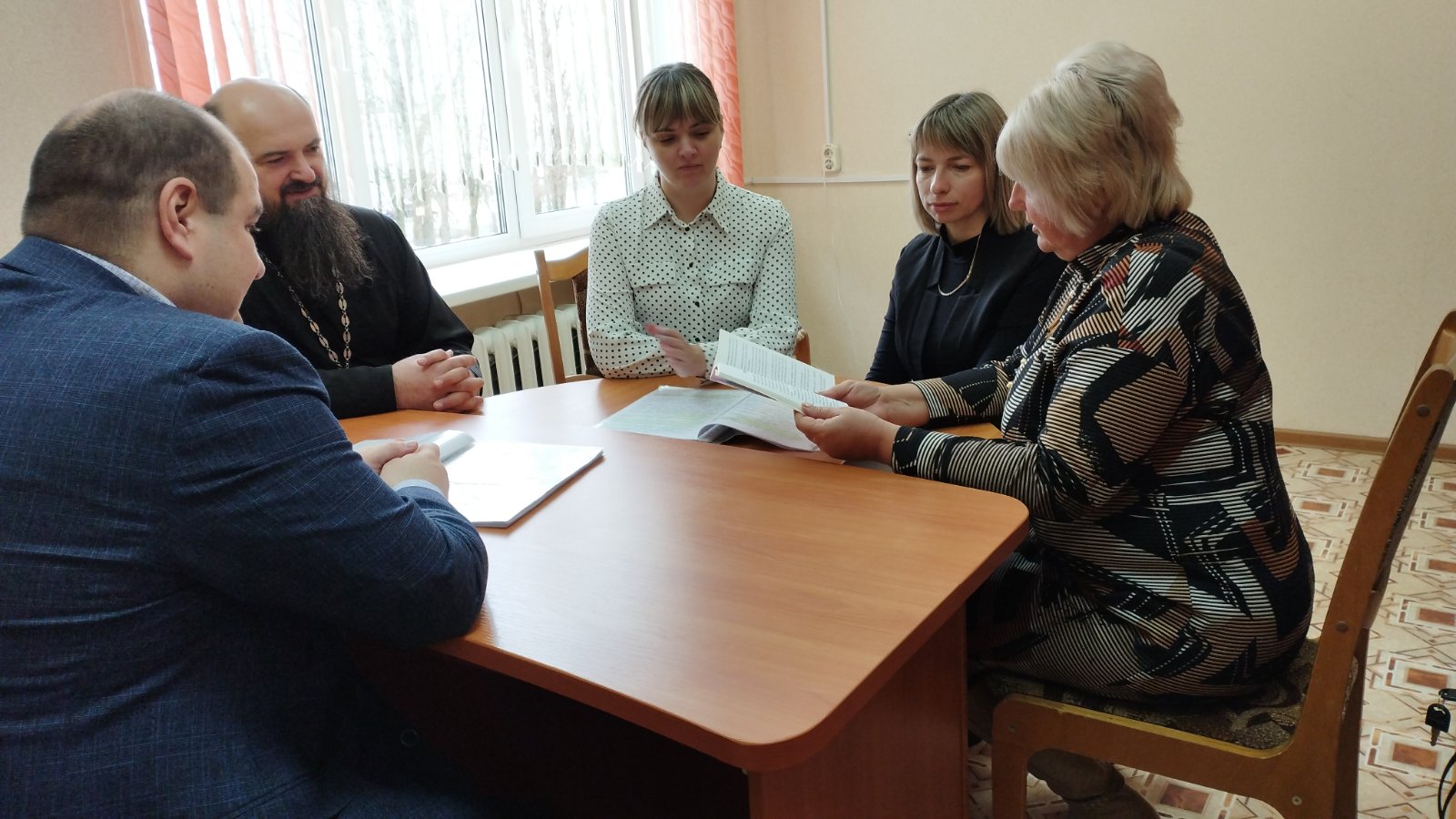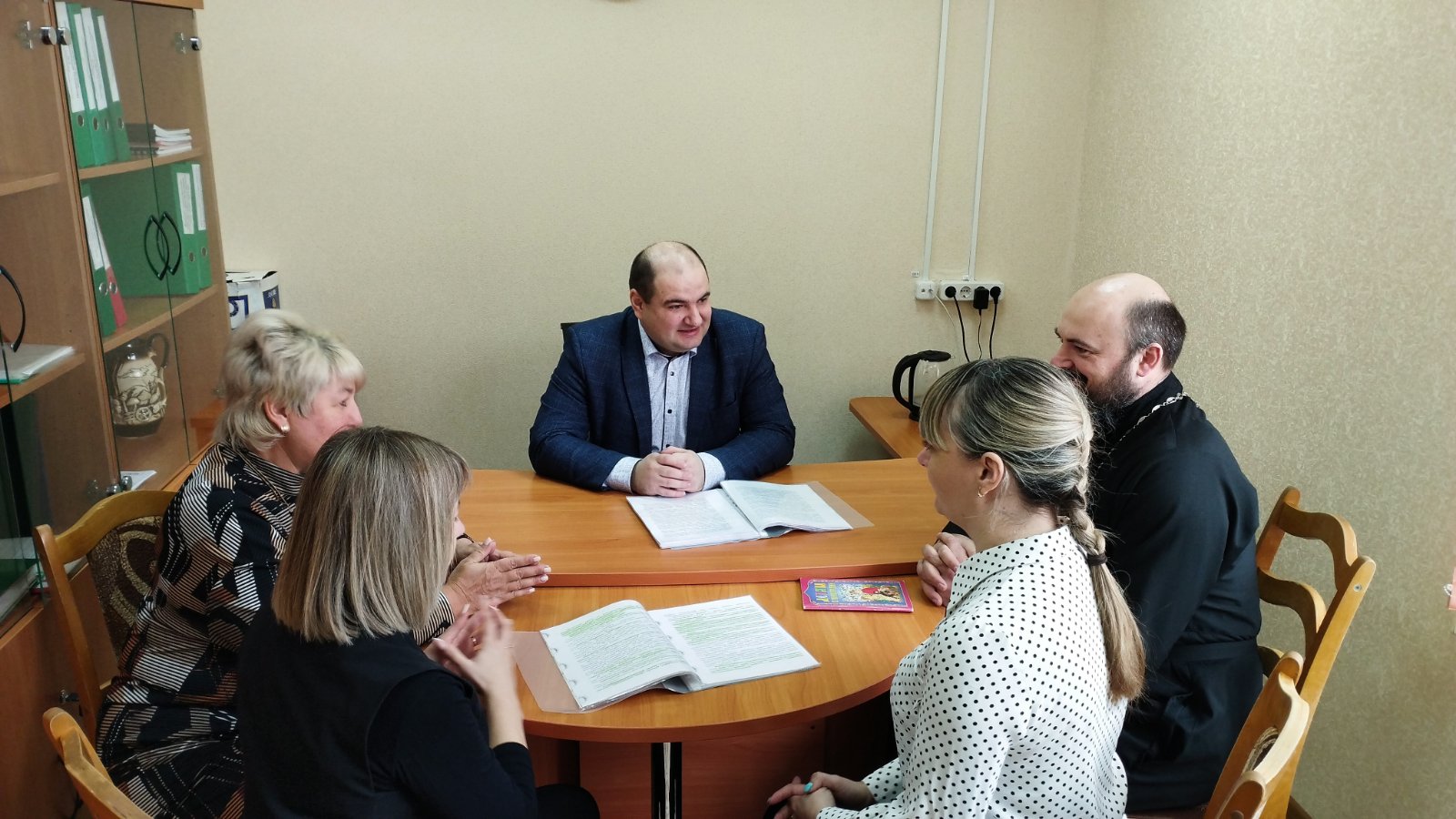 11.04.2025. 5- день ХІV педагогического марафона. День руководителя. Тема «Основы духовно-нравственной культуры и патриотизма». В этот день в учреждении прошел час общения с клириком храма Св. Пантелеймона Савчуком Евгением. В беседе приняли участие руководство учреждения и педагоги, которые стоят в резерве на должность директора и заместителя директора. Темой разговора стала «Роль духовна - нравственной культуры и патриотизма в современном образовательном процессе».