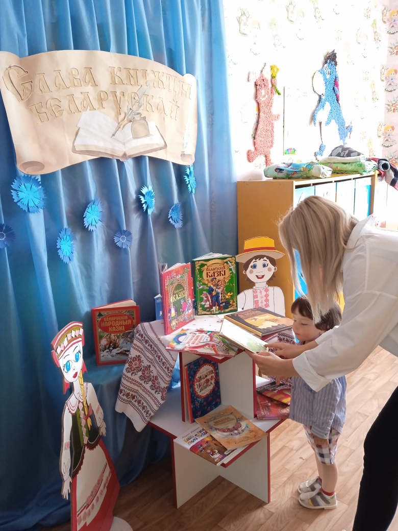 В младшей группе прошел целый комплекс мероприятий: воспитателем Денисеней Ольгой Александровной в группе, для родителей, была организована выставка книг белорусской литературы "Слава кніжцы беларускай", которую педагог активно использует в работе с детьми, чтение произведений художественной литературы, рассматривание иллюстраций книг. Так же законные представители воспитанников приняли участие в Челлендже "ЧЫТАЕМ РАЗАМ" (видео челленджа), где родители продемонстрировали выразительное чтение стихов, колыбельной и сказок на белорусском языке. Дома родителям предлагалось совместно с детьми просмотреть мультфильм на белорусском языке по мотивам сказки «Пiлiпка» https://www.youtube.com/watch?v=mQjkqgQua5g