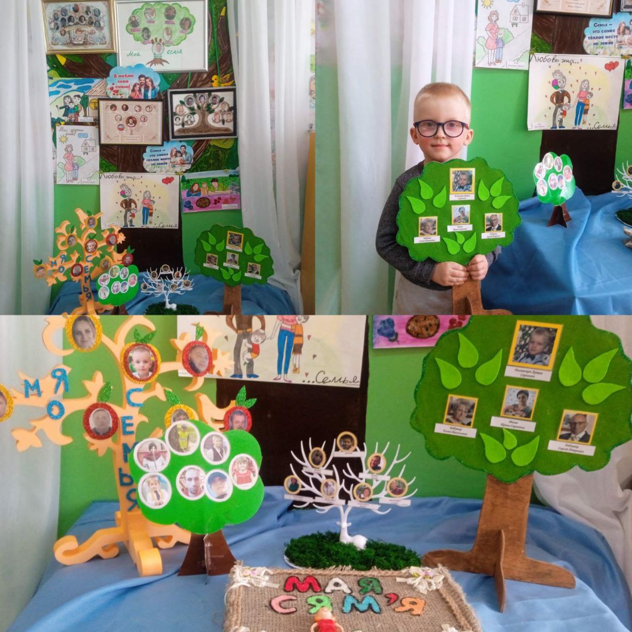 Воспитанники группы «Мультяшки» совместно с родителями изготовили генеалогические древа своей семьи и представили свои работы для групповой выставки.