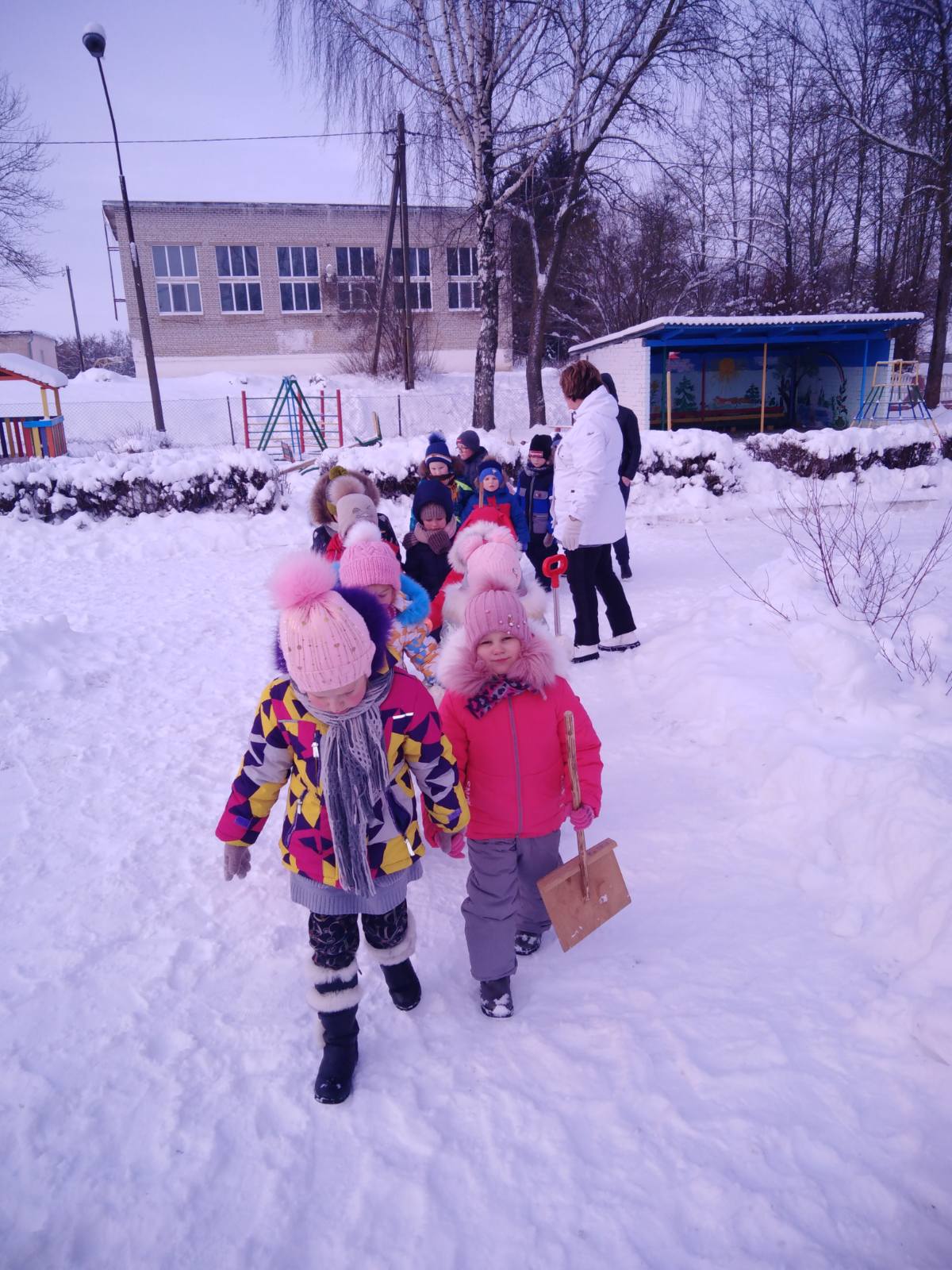 Во время зимних прогулок дети получают заряд бодрости и хорошее настроение, к тому же совместная деятельность развивает социальные навыки, воспитывает дружелюбие и чувство ответственности.
