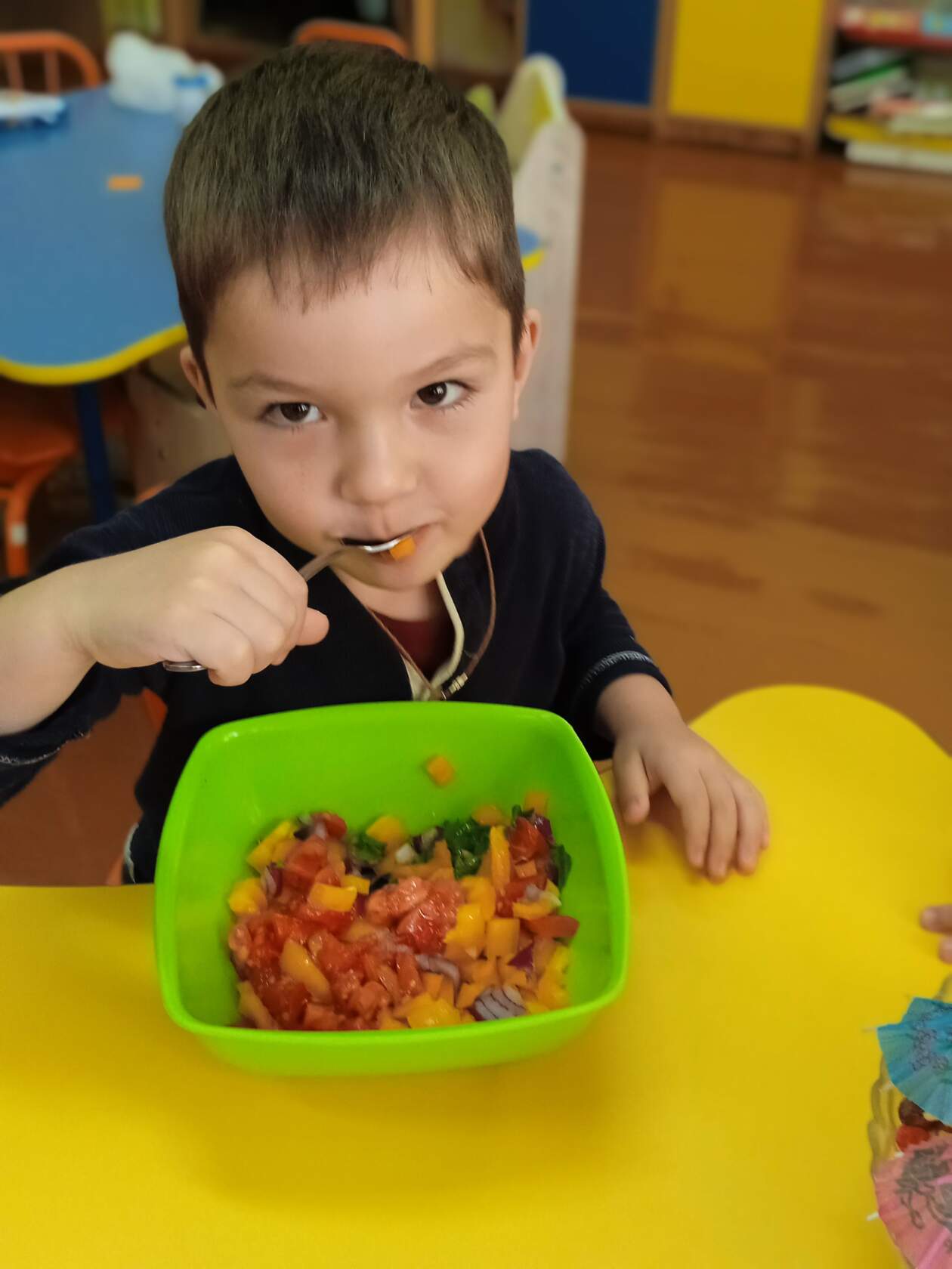 В дошкольном возрасте дети обожают новые открытия, новые исследования, новые действия. Ведь действуя самостоятельно, ребенок быстрее учится, быстрее запоминает. В разновозрастной группе уже стало традицией приготовление салата своими руками. Дети с большим желанием и удовольствием выполняют все практические действия: соблюдают правила гигиены, готовят трудовой инвентарь, овощи и, конечно же, готовят салат самостоятельно. Когда труд интересен и по силам, он приносит массу удовольствия!