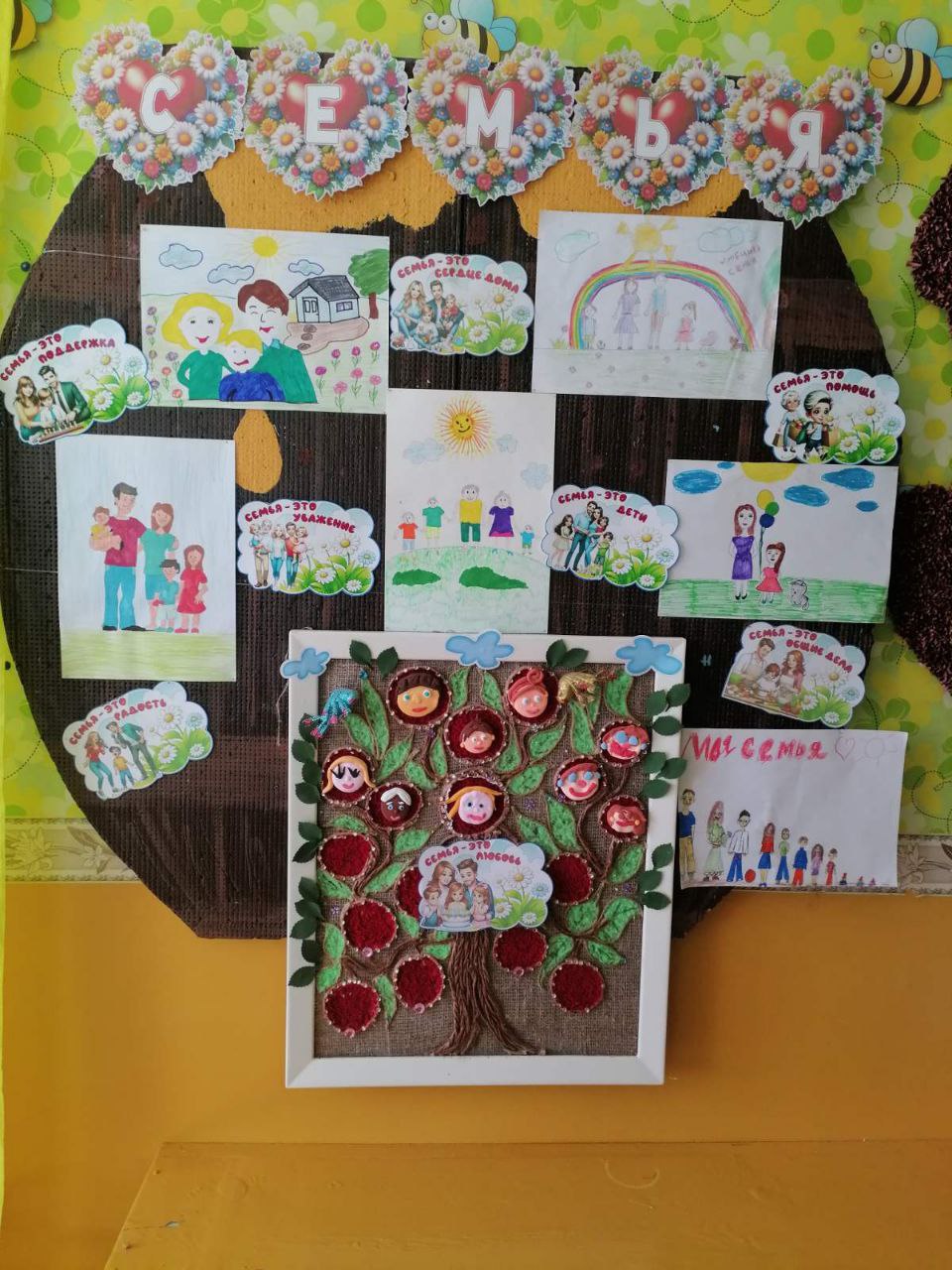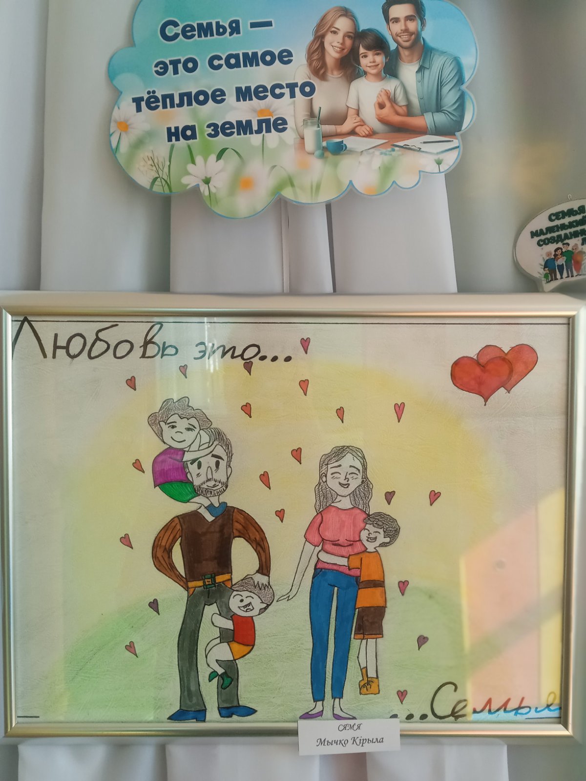 Семья - самое главное в жизни для каждого из нас. Близкие люди, которых мы любим, уважаем и о ком заботимся, являются нашим примером и опорой. Именно в семье мы учимся любви, ответственности и уважению. Нет крепче на земле союза, чем счастливая и дружная семья. В рамках проведения месячника по профилактике и предотвращению насилия в разновозрастной группе «Мультяшки» была организована выставка совместных рисунков детей и родителей «Наша дружная семья».