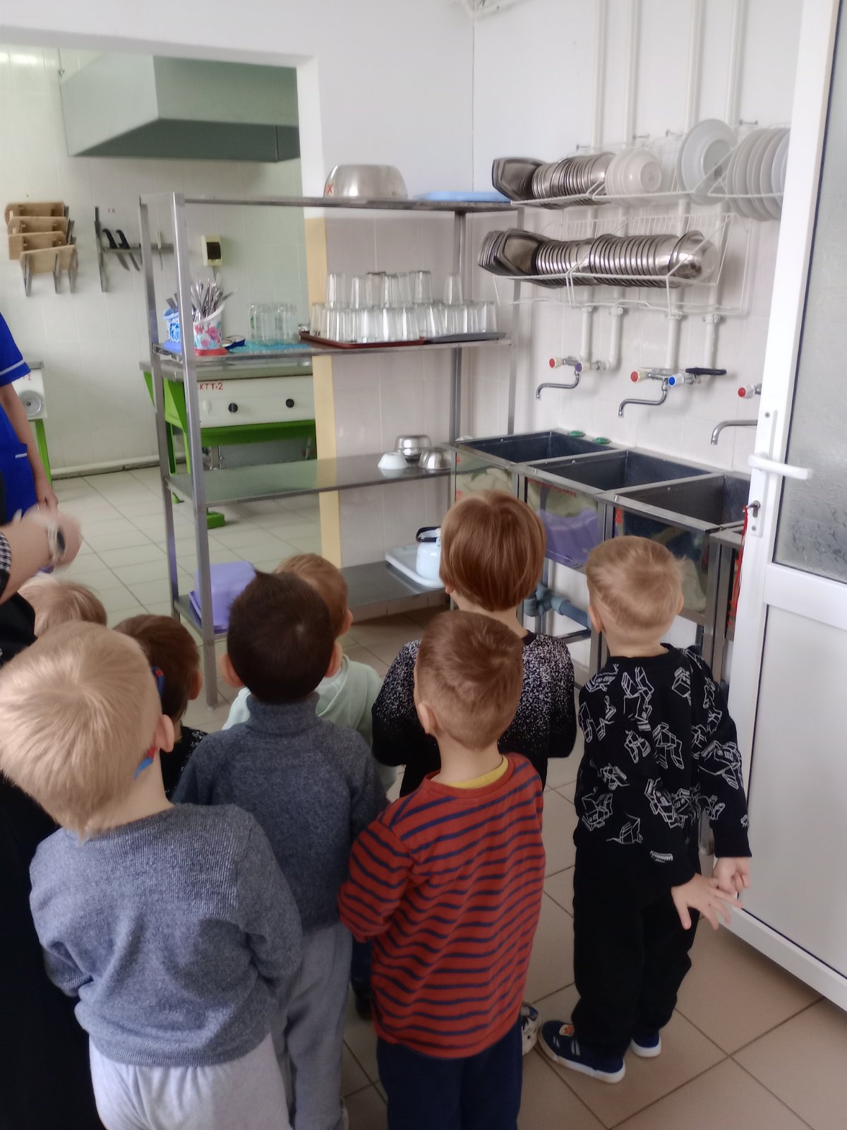 Воспитанники разновозрастной группы "Мультяшки" посетили кухню Выверской базовой школы с целью знакомства с трудом повара и формирования представлений о работниках кухни. Повара провели интересную экскурсию, показали детям посуду, в которой готовится вкусный обед для ребят, ножи и поварешки, разделочные доски. Ребята своими глазами увидели процесс приготовления обеда. Больше всего поразило детей то, каких огромных размеров посуда, плиты и другое оборудование. В конце экскурсии воспитанники помогли повару приготовить угощение для родителей- печенье. Посещение кухни вызвало большой интерес и положительные эмоции, дети с удовольствием продолжили знакомство с профессией в игровой деятельности.