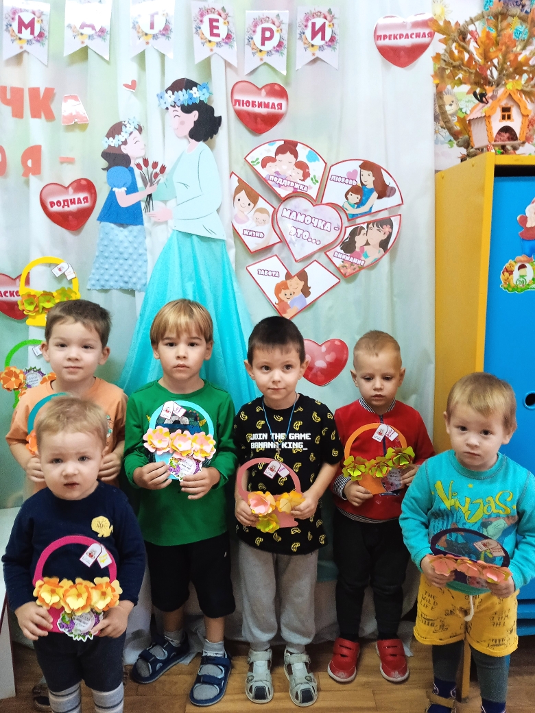 Мама – самое близкое, дорогое и родное для любого человека слово. Для малыша ближе мамы никого нет. Конечно же воспитанники детского сада не остались в стороне и вместе с воспитателем изготовили подарки для мамочек. Также была оформлена фото зона с поздравлением для родителей.
