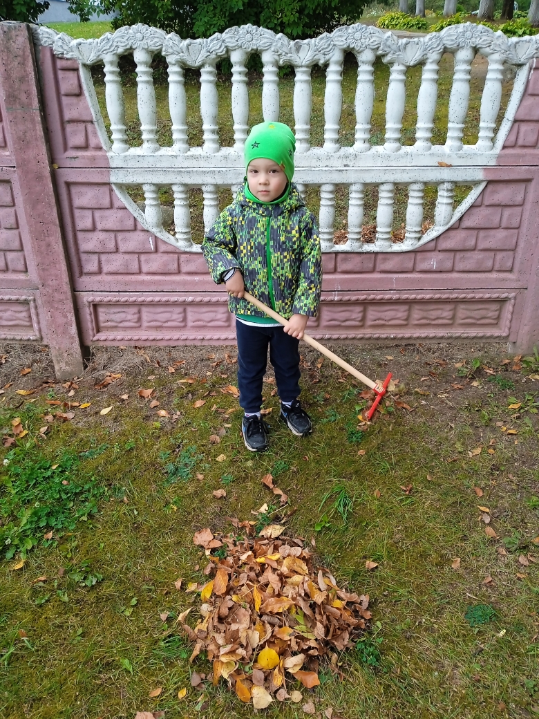 Осень - прекрасное, яркое, разноцветное время года. Опавших листьев на нашем участке становиться все больше и больше. А ребята, очень любят трудиться. Вот и сегодня, все дружно поработали: сгребали листочки в кучи. Получили заряд хорошего настроения от совместного труда.