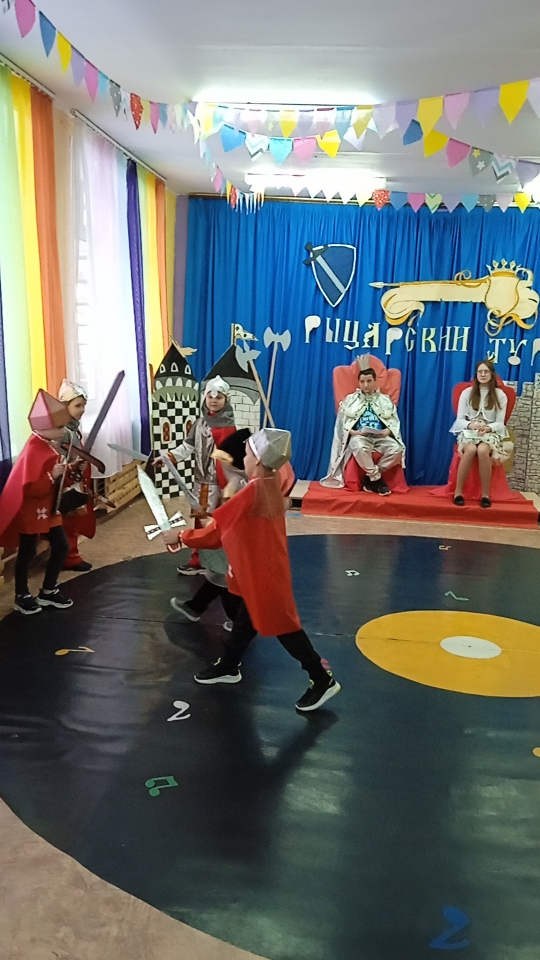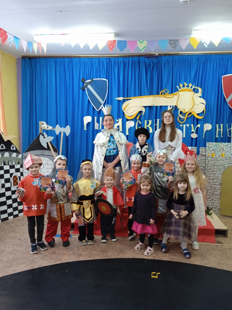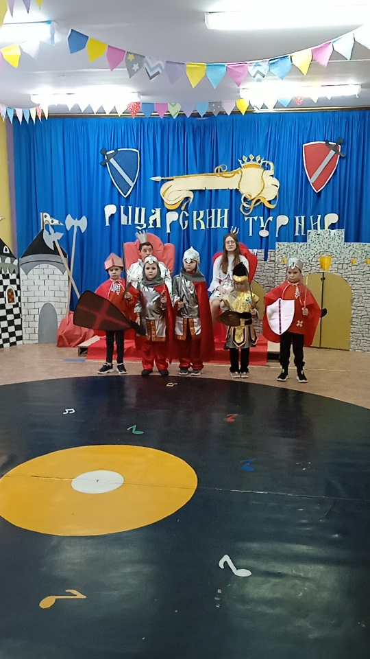 24 февраля для воспитанников разновозрастной группы в детском саду был организован спортивно-музыкальный праздник «Рыцарский турнир». Мероприятие было посвящено празднику 23 февраля: ведь рыцарь, прежде всего защитник. Во времена средневековья рыцарями были отважные, смелые воины. Будущим защитникам предстояло пройти ряд испытаний в конкурсах. В каждом соревновании нужно было проявить смекалку, логику и чувство юмора. Участники турнира с честью и достоинством выдержали предложенные им трудные испытания. Мальчишки показали, что на нашей земле растут настоящие защитники, способные проявить мужской характер, силу, смелость, упорство. В конце соревнований всех юных героев ожидал ритуал посвящения в рыцари и поздравление от "прекрасных принцесс".