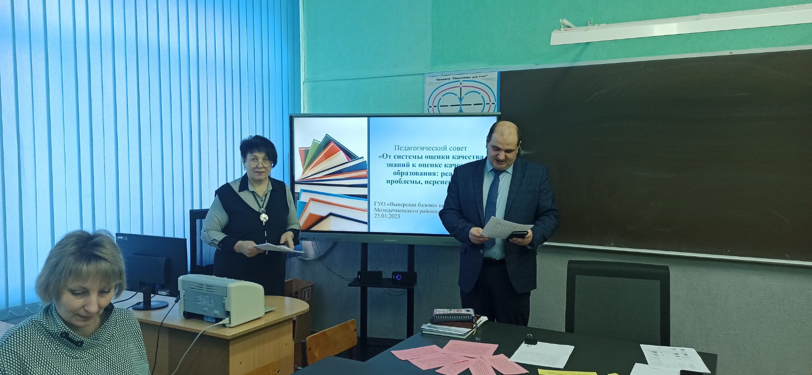 17.01.2024 в учреждении образования прошёл педагогический совет «От системы оценки качества знаний к оценке качества образования: реалии, проблемы, перспективы». Целью педагогического совета было оказание теоретической и практической помощи педагогам в овладении современными оценочными материалами, формами и методами повышения качества образования через отметку, побудить педагогов, учащихся к активной деятельности по повышению качества образования и уровня знаний учащихся на всех ступенях общего среднего образования.