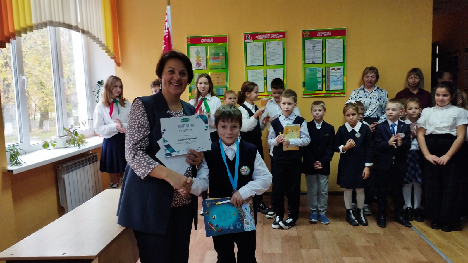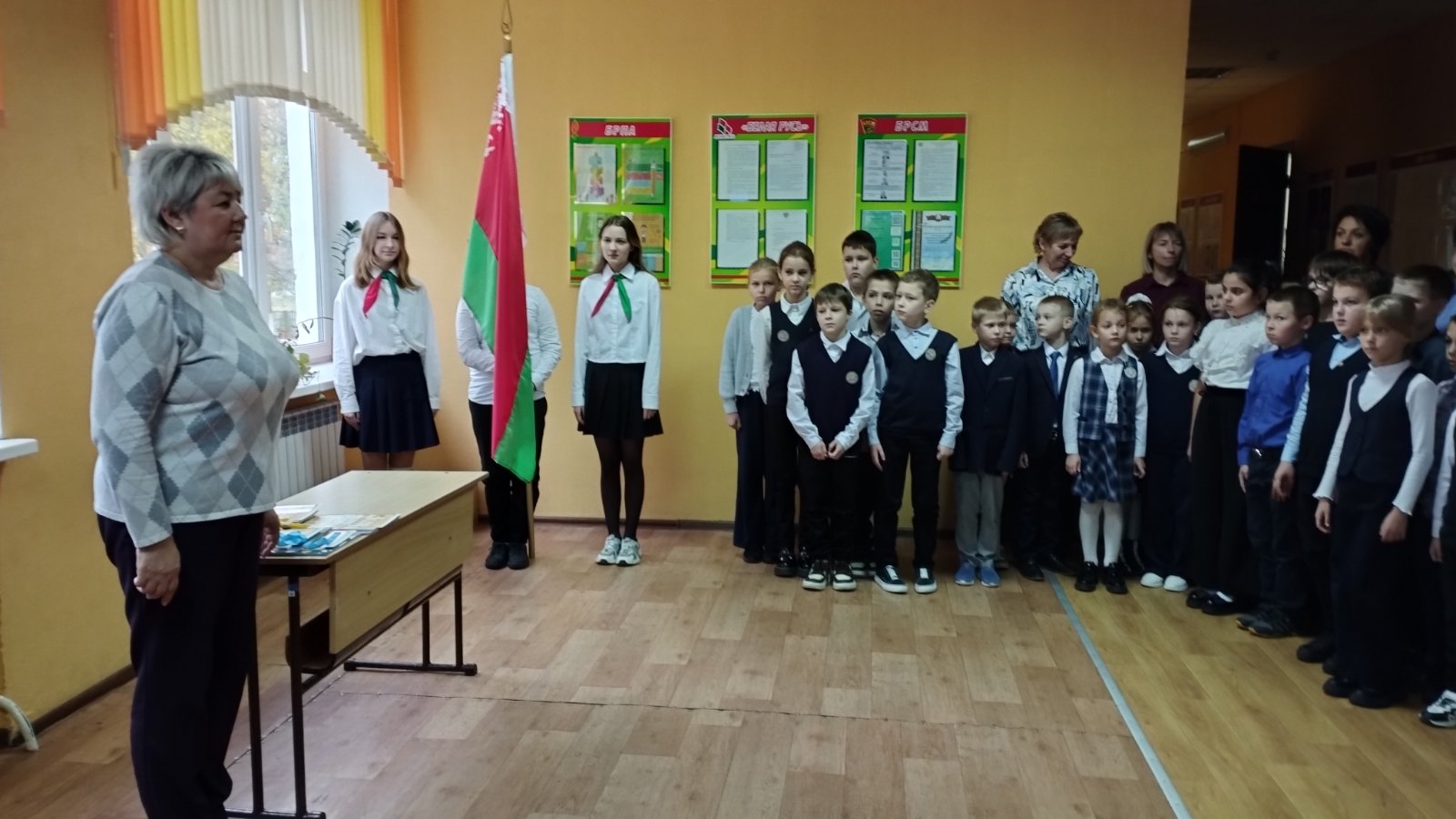 Высоким воспитательным моментом стала торжественная церемония вноса и выноса Государственного флага Республики Беларусь Знамённой группой и исполнения гимна Республики Беларусь. На торжественной линейке были вручены благодарности учащимся по результатам учебной, спортивной и творческой и общественной деятельности. С напутственным словом к учащимся обратилась заместитель директора по учебно-воспитательной работе Юкевич М.А., которая поздравила ребят с окончанием первой четверти, пожелала всем интересных, полезных каникул и отметила учащихся, которые приняли активное участие в общественной жизни школы, района, а также напомнила детям о соблюдении правил безопасного поведения во время осенних каникул. Особое внимание – правилам перехода проезжей части, пожарной безопасности, необходимости обозначать себя световозвращающими элементами в вечернее время, на объектах железнодорожного транспорта, на водоемах, о недопустимости совершения правонарушений. Особое внимание уделила соблюдению мер противопожарной безопасности.