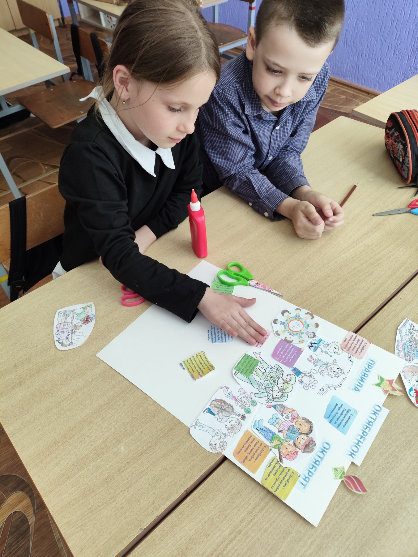 12.05. в рамках реализации программы "Я. Моя семья. Моя Родина" у учащихся 2 класса прошёл классный час по теме "Портрет октябренка". Ребята поучаствовали в викторине, разгадали кроссворд и в процессе создания калажа вспомнили правила октябрят.