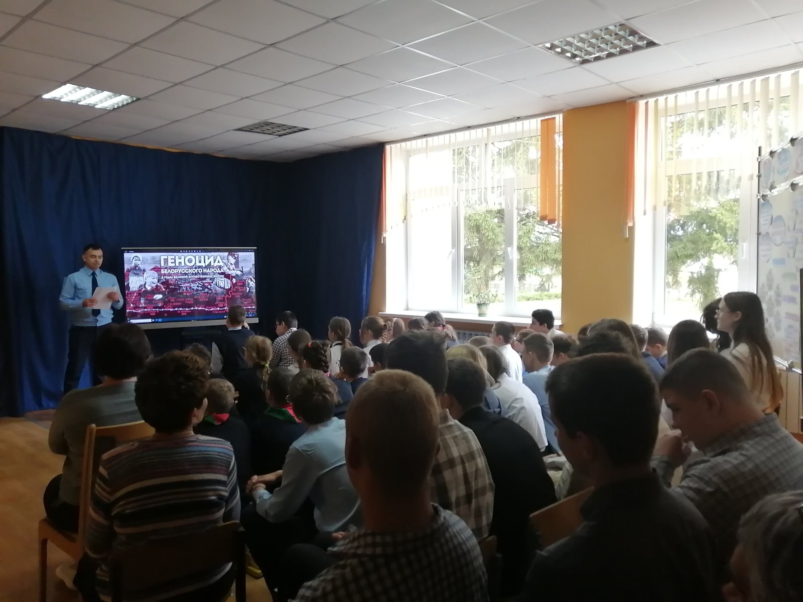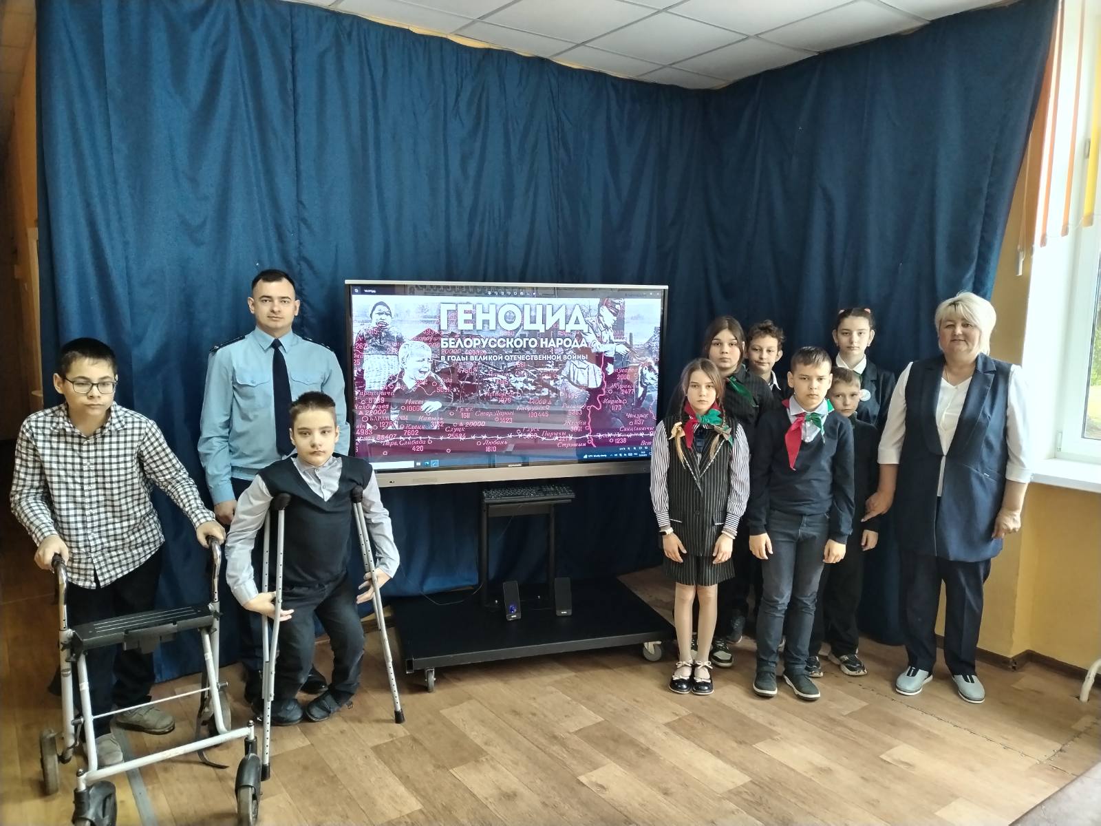 25.04.2025 в учреждении состоялась встреча с помощником прокурора г. Молодечно Капуцким Е.Д. Елизар Дмитриевич рассказал учащимися о геноциде белорусского народа в годы Великой Отечественной войны. Во время выступления помощник прокурора рассказал учащимся о возбуждении генеральной прокуратурой Республики Беларусь уголовного дела по факту геноцида населения Беларуси в годы Великой Отечественной войны. Елизар Дмитриевич рассказал о страшном периоде белорусской истории, о сожженных деревнях, о местах принудительного содержания и уничтожения населения, о замученных нацистскими преступниками жителей Беларуси. Он отметил, что в ходе расследования уголовного дела устанавливаются новые места массового уничтожения мирных жителей. Также ребята узнали, какие меры принимаются для того, чтобы увековечить память жертв геноцида. Капуцкий Е.Д. отметил: «Основной задачей расследования является сохранение памяти у молодого поколения нашей страны о жертвах геноцида белорусского народа. Нельзя допустить переписывания нашей истории. Важно помнить о зверствах нацистов в Беларуси и ни в коем случае не допустить подобного в будущем».