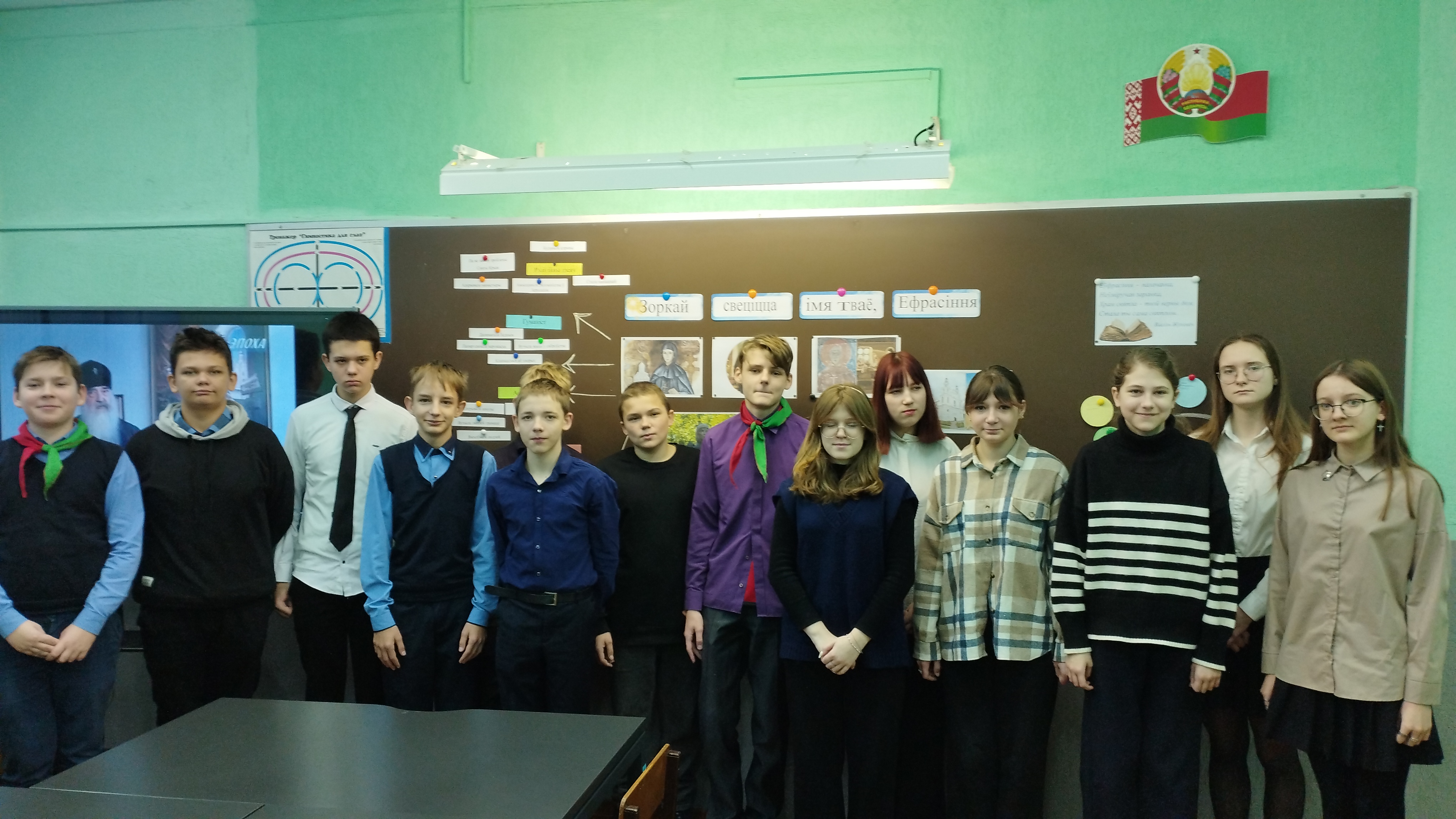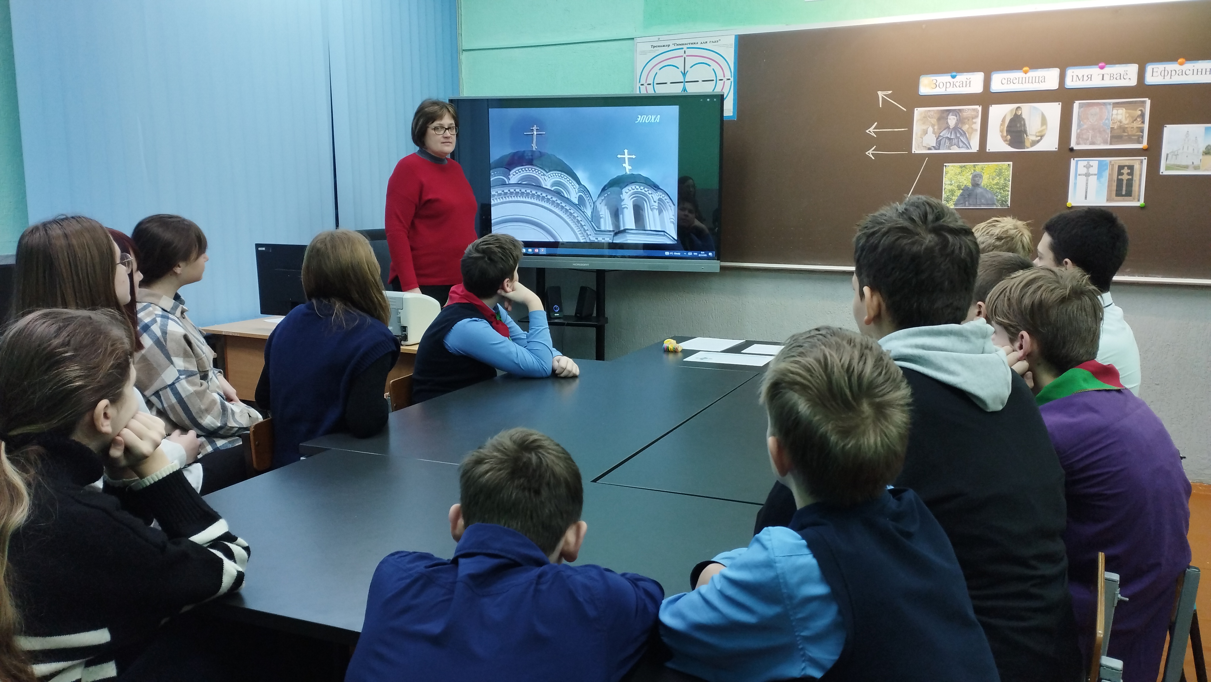 20 декабря 2023 года для 1-9 классов был проведен единый урок, посвященный Евфросинии Полоцкой "Зоркай свеціцца імя тваё, Ефрасіння". Мероприятие было направлено на формирование у учащихся представлений об особенностях духовного развития белорусского народа на примере жизни и деятельности просветительницы. Учащиеся заслушали историю жизни Ефросиньи, просмотрели отрывок документального фильма про покровительницу земли белорусской, заполнили кластер. В конце мероприятия учащиеся создали свою "Печать ценностей, где записали ценности ,которым следовала преподобная Ефросинья, и которые важны по сей день.