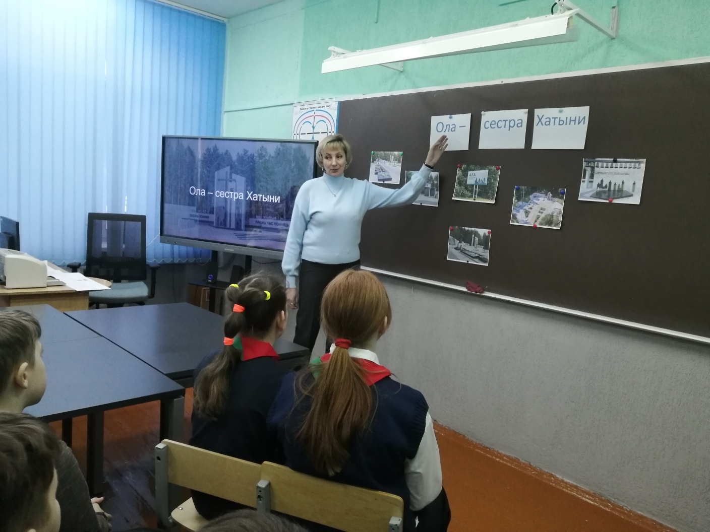 В ходе урока демонстрировались материалы о геноциде белорусского народа в годы Великой Отечественной войны. Учащиеся узнали, что историю, схожую с Хатынью, имеют многие белорусские деревни и познакомились с трагической историей деревни Ола, в которой погибло 1758 человек, среди которых 950 детей, 508 женщин, 100 мужчин и 200 стариков.