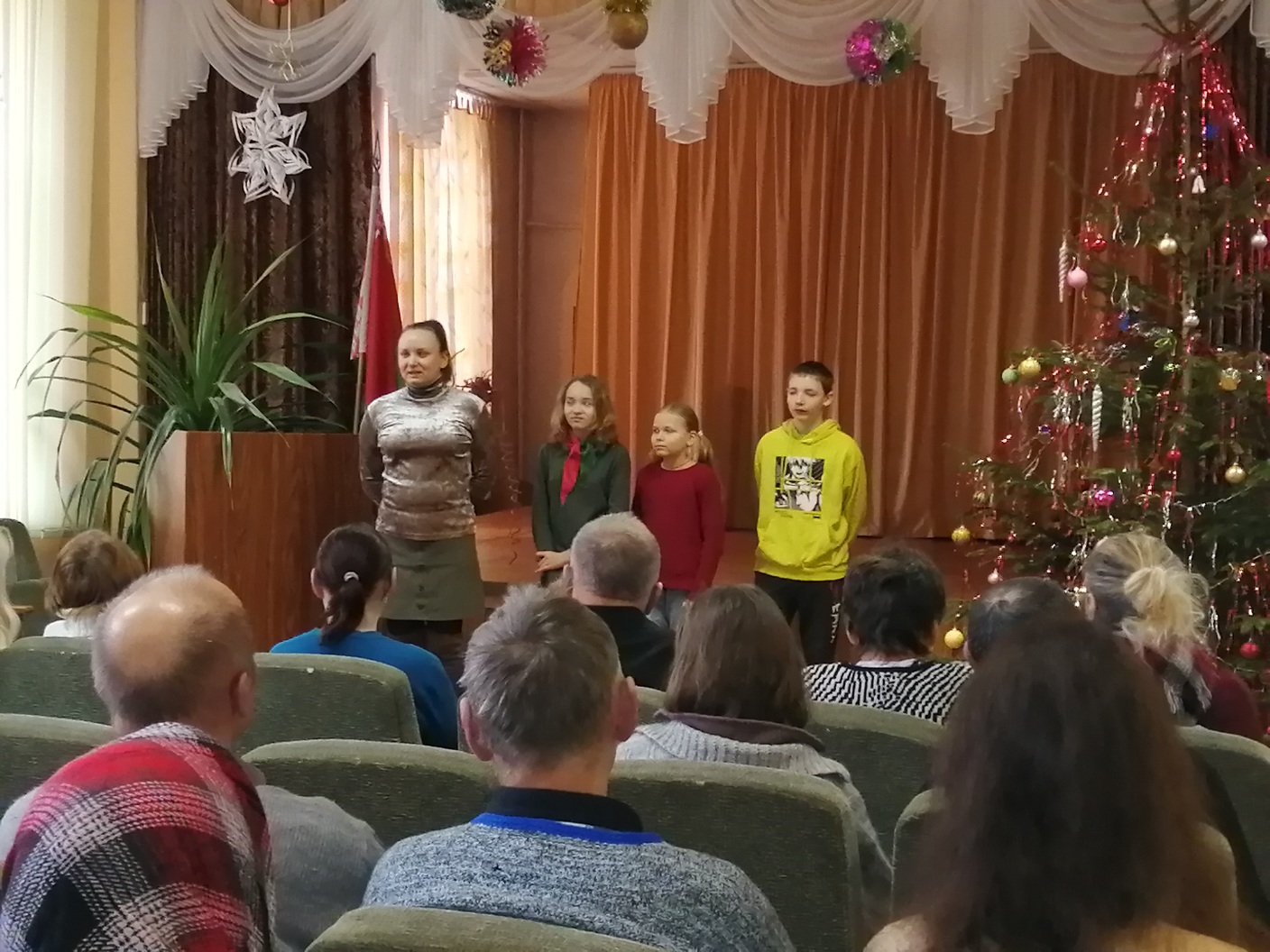 Новогодний праздник – чудесный праздник, связанный с надеждами на лучшее в грядущем году, с ожиданием исполнения всех желаний. Зал со зрителями, превратился в театр, на сцене которого разыгрывали настоящее представление. Ребята в полной мере продемонстрировали свои актёрские способности. Песни и танцы сменяли друг друга.