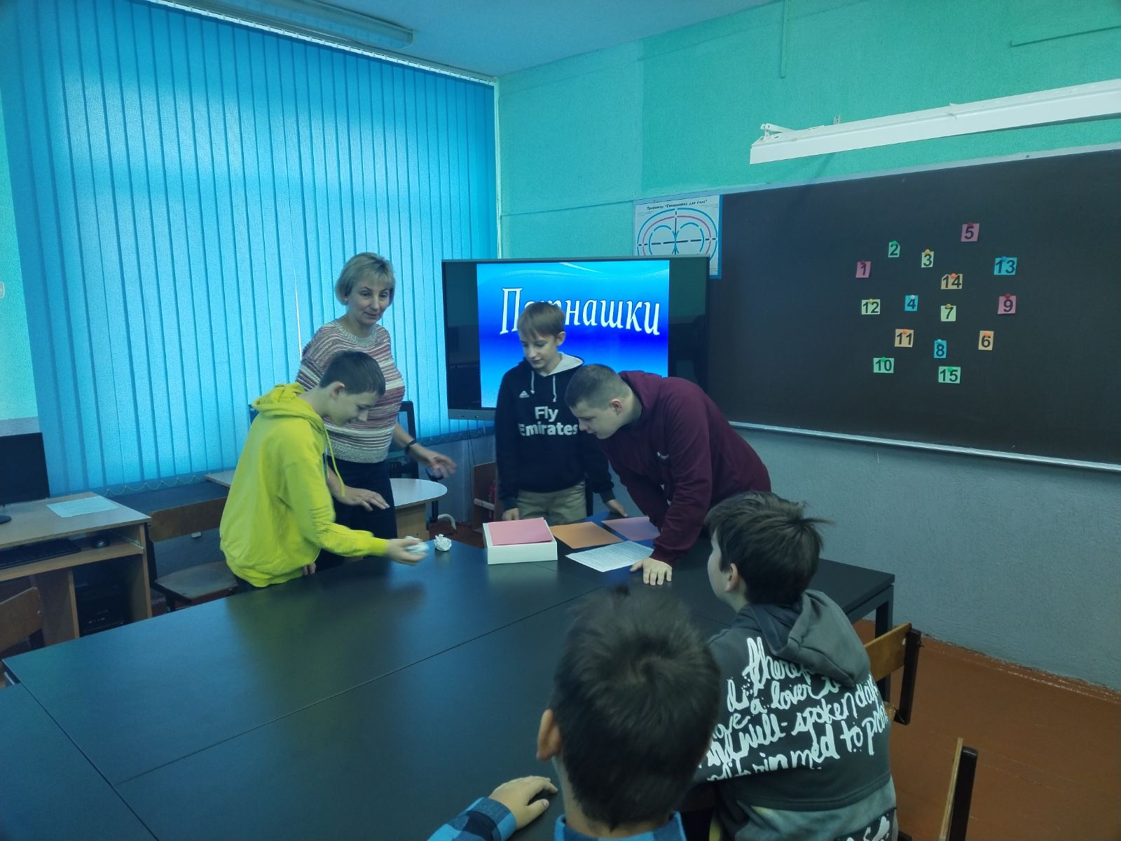 Как известно, каникулы – время отдыха. 01.11.2023 учащиеся 7 класса решили с пользой отдохнуть в школе, где приняли активное участие в интеллектуально-развлекательной игре «Пятнашки».