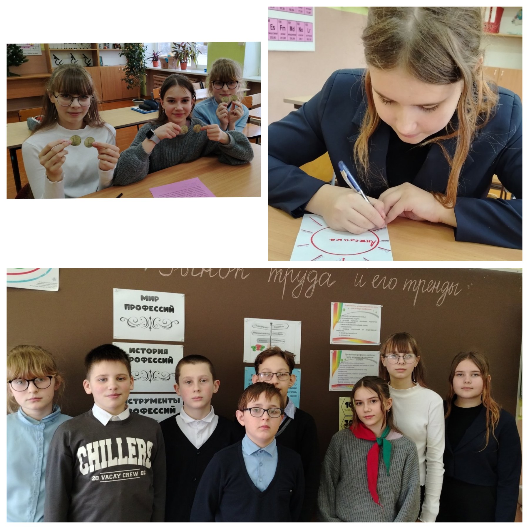 В рамках недели профориентации для учащихся 1-4 классов состоялись классные часы «Путешествие в мир профессий». Ребята с увлечением прошли шесть конкурсных этапов: отгадывали кроссворды, вспоминали пословицы о труде, определяли профессии по необычным признакам и пробовали себя в творческих заданиях. Высокая активность и интерес учащихся подтвердили, что цель — расширить их знания о профессиях — была достигнута.