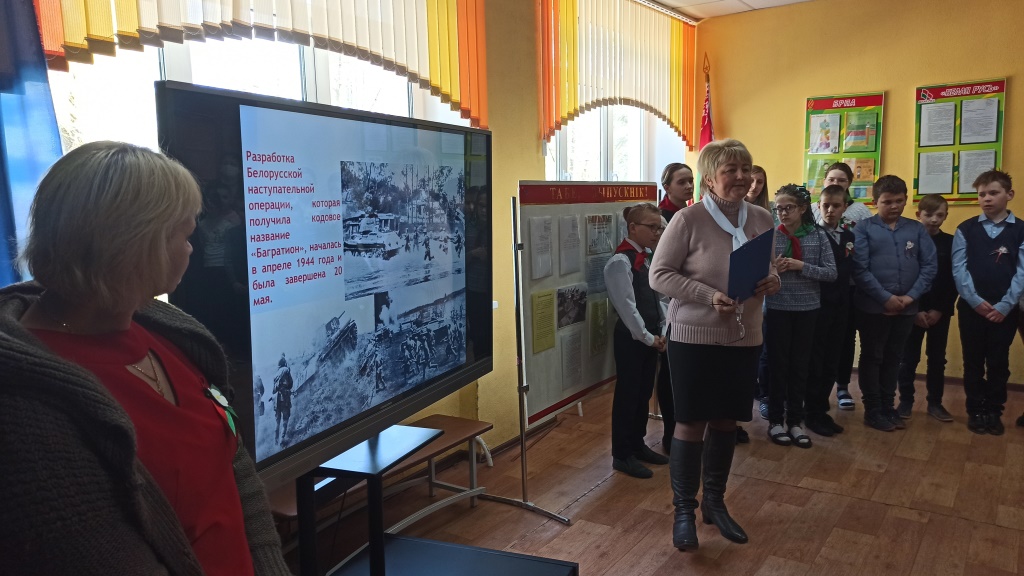 03.05.2021 в учреждении прошло торжественное открытие акции «Быть достойными Великой Победы!». С приветственным словом к учащимся школы обратилась заместитель директора по учебно - воспитательной работе Юкевич Марина Анатольевна. В своем выступлении она отметила, что время бессильно перед памятью того поколения, которое отстояло свободу нашей страны. Такой войны, как Великая Отечественная, в истории человечества не было, как и такой Великой Победы, которая освободила наш народ, нашу страну, все прогрессивное человечество. Великая Отечественная война для советского народа стала важнейшим поворотным пунктом в мировой истории.