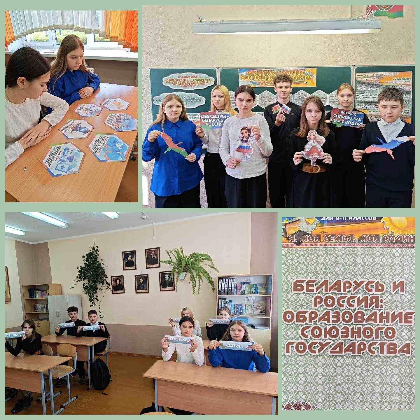 15.04.2026 в рамках программы «Я. Моя семья. Моя Родина» в 8 классе был проведён классный час по теме «Беларусь и Россия: образование союзного государства». Целью его явилось формирование у учащихся представления о истории становления и развития Союзного государства Беларуси и России, о том, что но дает гражданам двух стран; о молодежных проектах Союзного государства; содействие пониманию значимости Союза Беларуси и России. Классный руководитель обсудила с учащимися историю подписания договора между Беларусью и Россией. Также с ребятами обсудили сферы, где происходит сотрудничество двух государств: экономика, культура, медицина, наука, молодёжные проекты, сохранение исторического прошлого. В ходе обсуждения важных вопросов ребята активно высказывали собственные мнения.